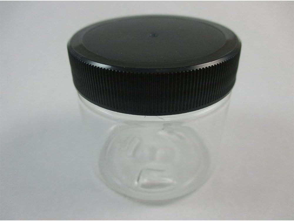 12 PET Plastic 2 oz Empty Clear Containers Jars Black Cap Creams Powder Food Travel !! These set of 12 Jars 2oz are made of PET (Polyethylene terephthalate) wich is a high quality, impact-resistant, food-grade plastic. The jars are clear and can hold a wide variety of items including: food, candy, powders, creams. etc. The Black screw-on lid (included) is smooth and flat to accommodate labels. Approximate Dimensions: 1 3/4" High 1.64" Top Diameter 2" Base Diameter