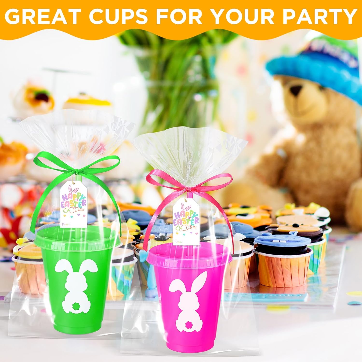 Features: Each Easter cup comes equipped with a secure lid and straw, ensuring ease and spill-free drinking on the go. These features make the cups perfect for outdoor picnics, egg hunts, and Easter events, catering to both kids and adults. Each Easter plastic straw cup holds a generous 16 oz, ideal for hydrating throughout your Easter celebrations. Whether you're sipping on a refreshing drink or enjoying your morning coffee, these bunny mugs cater to your beverage needs without frequent refills. Specifications: Material: Easter plastic straw cups: plastic Easter card: coated paper Color: multicolor Size: Easter plastic straw cups: 16 oz Gift ribbon: 0.39 inches x 866.14 inches/ 1 cm x 22 M Easter card: 1.57 x 2.36 inches/ 4 x 6 cm Package includes: 30 x Easter plastic straw cups 50 x OPP bags 6 Rolls gift ribbon 40 x Gourd pin 30 x Easter card Notes: Manual measurement, please allow slight errors on size. The color may exist a slight difference due to different screen displays.