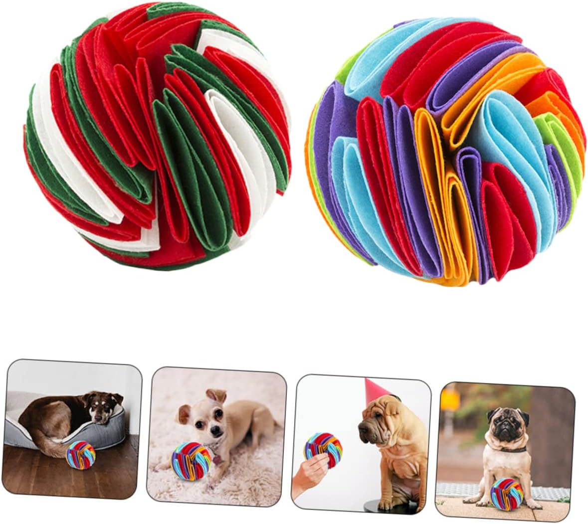 Package Include 4 x dog sniffing Characteristics - Material: Felt cloth Dog Sniff Balls - Size: About 15.00X15.00X15.00cm/5.89X5.89X5.89inch Sniff Training Balls - Color: As shown Pet Playthings - Exercise the pets’ sense of smell, mimicking the hunt for food Sniff Balls . - Designed to slow down pet's eating and -choke, the pet's sense of smell Dog Interactive . - It is well-made of and sturdy materials, and for using time Pet Supply. - It is a unique dog training ball that allows your dog to find snacks or small in Pet Dog Sniff Training . - The snuffle ball can and stress of your pet dogs Pet Feeding .Goods DescriptionDog Sniff Balls If you are looking for snuffle ball for your pet dogs, then you must not miss our dog snuffle ball.Pet Feeding It can be used for feeding your dogs slowly and prevent him from being choked.Dog Sniffing Balls Made from felt cloth material, it is and