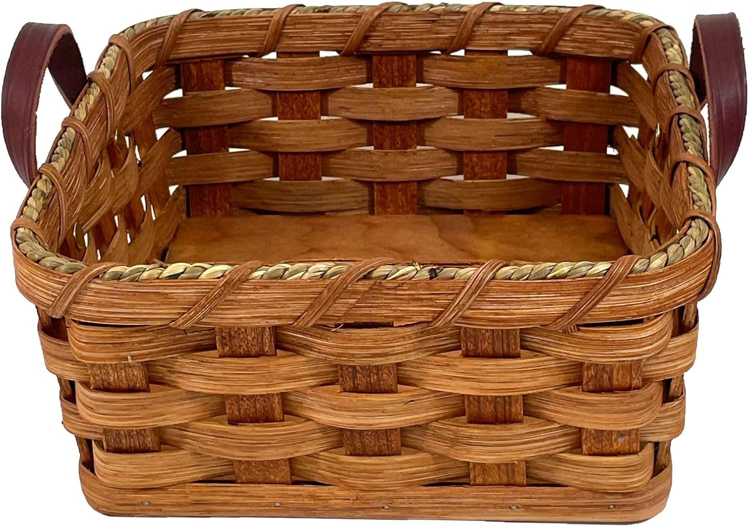 This Amish Baskets and Beyond Handmade Oak Napkin Basket is a classy and convenient way to store your napkins. This napkin basket will hold a nice stack of napkins, bread, rolls or fruit, or any of hundreds of other items you would like to keep organized and in one place. Perfect for everyday use or for parties and get-togethers. Hand-woven and signed by our Amish Crafter, this basket features a solid oak bottom, pine wood reeds, and leather loop carrier handles.