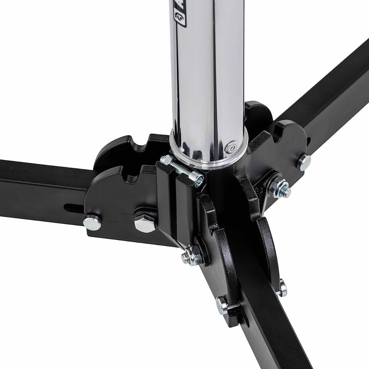 This Junior folding base studio stand is the perfect addition to your lighting gear. The folding design makes storage and transport a breeze The low profile legs allow easy positioning while the built in wheels make moving around the studio a snap. The wheels have built in brakes to keep the stand safely in place. A built in leveling leg allows use on uneven terrain making this the perfect choice for studio and location work alike. Minimum Height 51"; Maximum Height 11.1'; Closed Length 4.1'; Footprint Diameter 39.3"; Weight 23.6 lbs.; Maximum Load 44 lbs.; Attachment, 5/8" stud, 1-1/8" female receptor. This Replaces the Avenger A690.