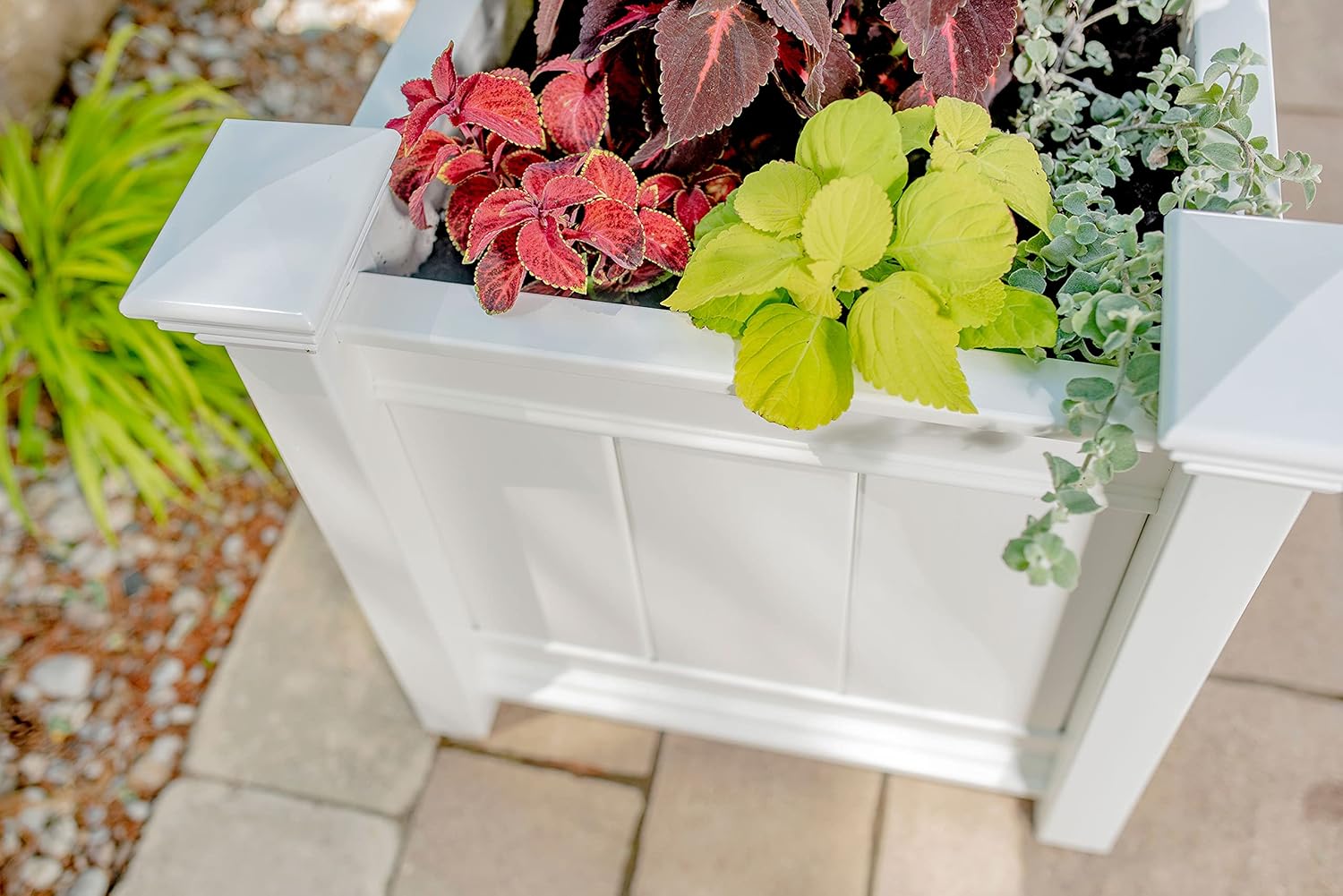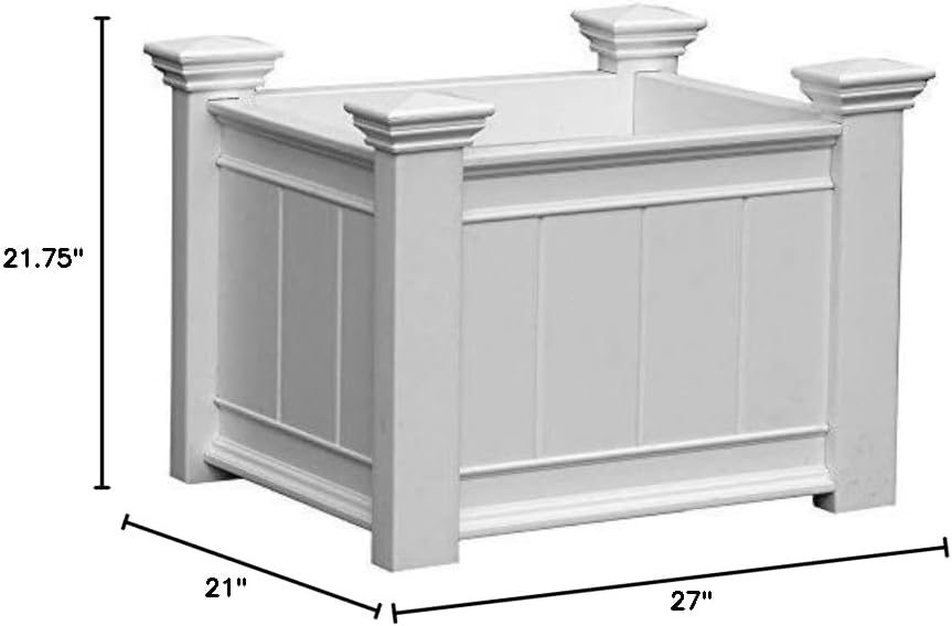Spruce up your property with the Barcelona Planter Box. Crafted from premium weather-resistant vinyl, your planter will be strong and durable, have beautiful detail, and will never need to be painted or stained - its a perfect solution to your potting needs. We manufacture all of our products to create the look of wood without the traditional maintenance. The occasional rinse with a garden hose is all you need to do to keep your planter box looking great year after year. This product comes with a 20 year manufacturers warranty against yellowing, warping, cracking, and rotting. Wood will rot away, but vinyl is strong and durable to last a lifetime. The Barcelona Planter Box is easy to assemble, requiring only a drill.