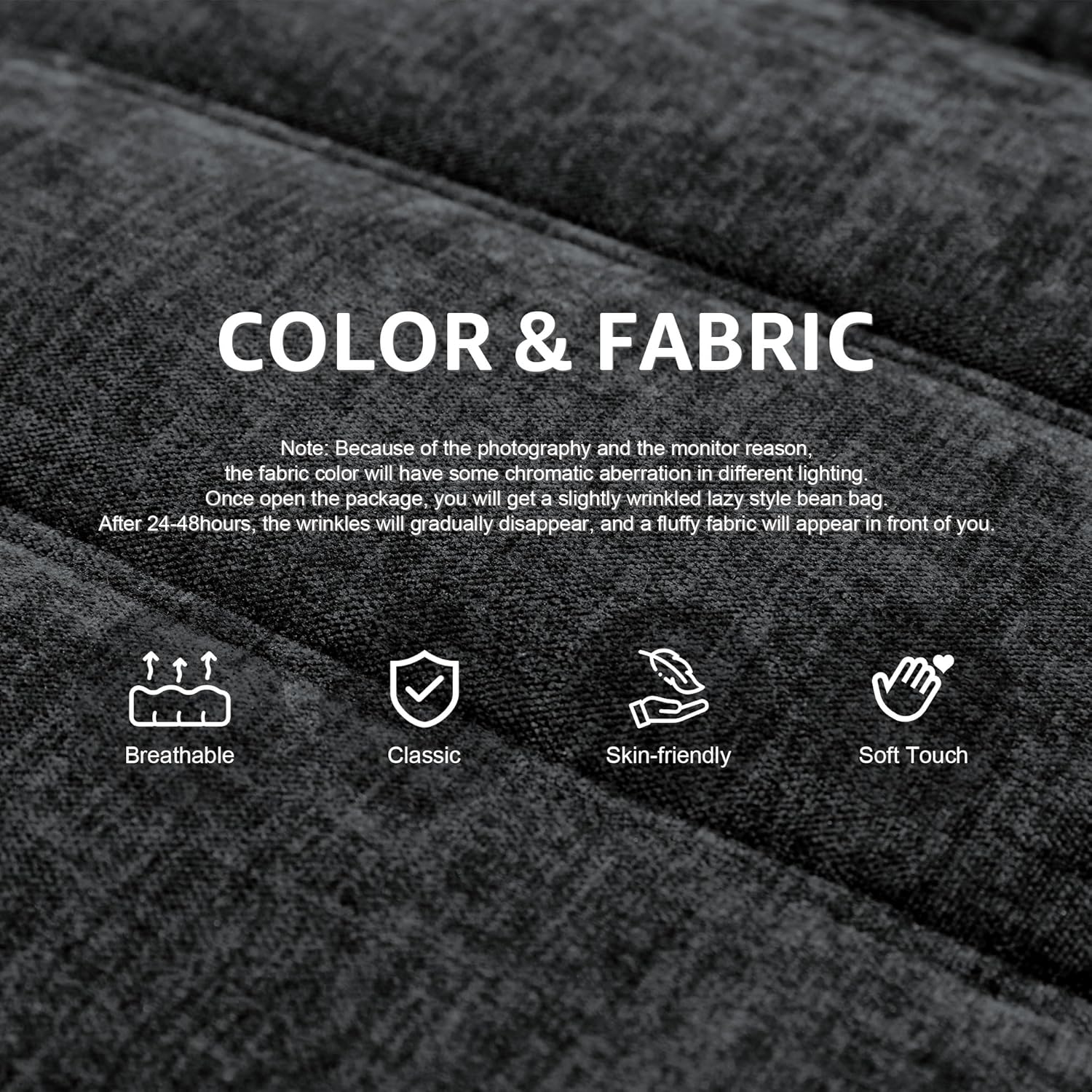 • Premium Fabric:This entire loveseat bean bag is wrapped in luxurious microfiber leather fabric, showcasing excellent texture and elegant appearance. The material features superior wear resistance, aging resistance, softness and breathability, making this bean bag love seat for adults exceptionally easy to maintain