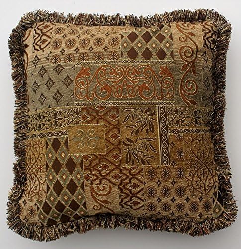 These heavy chenille transitional pillows go well with todays modern decor. The chenille is mixed with a collage of embroidered metallic colors and prints.