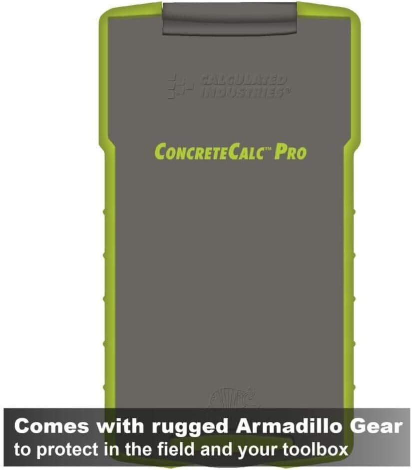 Product Description The ConcreteCalc Pro has been the standard for concrete workers for years. This powerful yet easy-to-use calculator enables estimators to bid jobs profitably and for project managers to order the correct amount of materials so a job is completed without shortages or excessive overages. In the field, foremen can layout jobs with confidence knowing square-ups and drops are per plan. Being able to calculate area, volume and weight per volume are just the beginning. Being able to enter the cost per unit and then quickly solve unit costs and total pricing help you keep projects in budget. Building materials and techniques have changed over the years but geometry and the need to work quickly and accurately with dimensions is as important and as difficult as ever. Put the ConcreteCalc Pro on your next project and you’ll be glad you did. From the Manufacturer With Calculated Industries' ConcreteCalc Pro 4225 quickly & easily figure: Dimensional math & conversions, handle all fractions, concrete areas & volumes, square-ups, drops & right angle problems, blocks & footings, weights/volumes, circular problems, including areas & arcs, stair layout calculations, and material cost & quantity estimations. Includes: user's guide, Armadillo Gear protective case, long-life battery and a 1-year warranty.