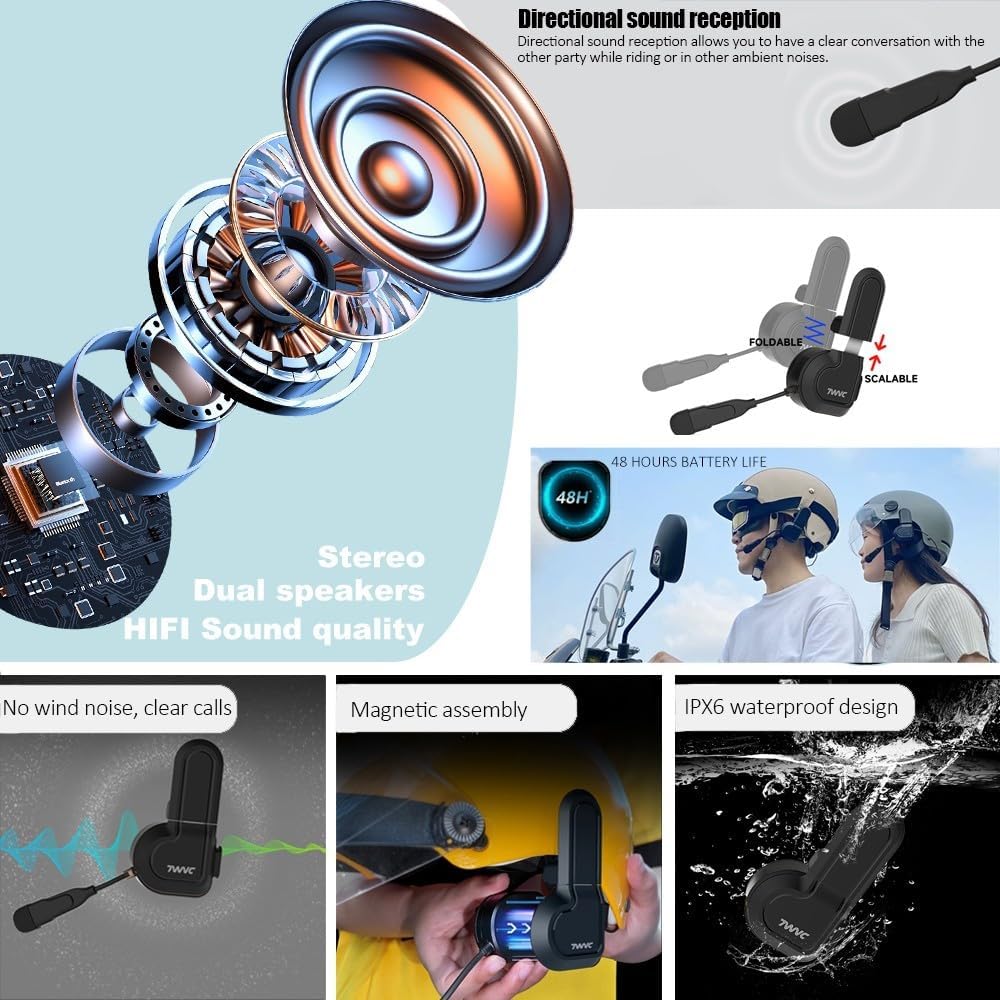 Los beneficios de usar un medio casco de motocicleta con un auricular Bluetooth se reflejan principalmente en los siguientes aspectos: 1. Mejora la comodidad de conducción Llamadas manos libres: puede responder llamadas sin sacar el teléfono, evitando riesgos de seguridad causados por el funcionamiento distraído del dispositivo. Indicaciones de navegación: recibe instrucciones de voz de navegación en tiempo real, lo que reduce la necesidad de mirar con frecuencia el teléfono o el tablero. 2. Mejora la seguridad Concéntrese en las condiciones de la carretera: transmita información directamente a través de los auriculares para reducir la distracción causada por el funcionamiento del equipo. Material de la carcasa: ABS El casco pesa solo 650 g, es liviano, tiene un forro interior cómodo, no se cansa después de recorrer largas distancias después de usarlo Temporada aplicable: todas las estaciones Género aplicable: unisex Parámetros de Bluetooth: Modelo de producto: X2-C Versión de Bluetooth: 5.3 Distancia de Bluetooth: ~10 m (MÁXIMO) Tamaño del producto: host 95 × 50 × 24 mm Capacidad de la batería: 500 mAh Tiempo de carga: ≤1,5 horas Nivel de impermeabilidad: IPX6 Tamaño: S = 55-56 cm/21,6 - 22 pulgadas; M = 57-58 cm/22,4 - 22,8 pulgadas; L = 59-60 cm/23,2 - 23,6 pulgadas; XL = 61-62 cm/24-24,4 pulgadas;