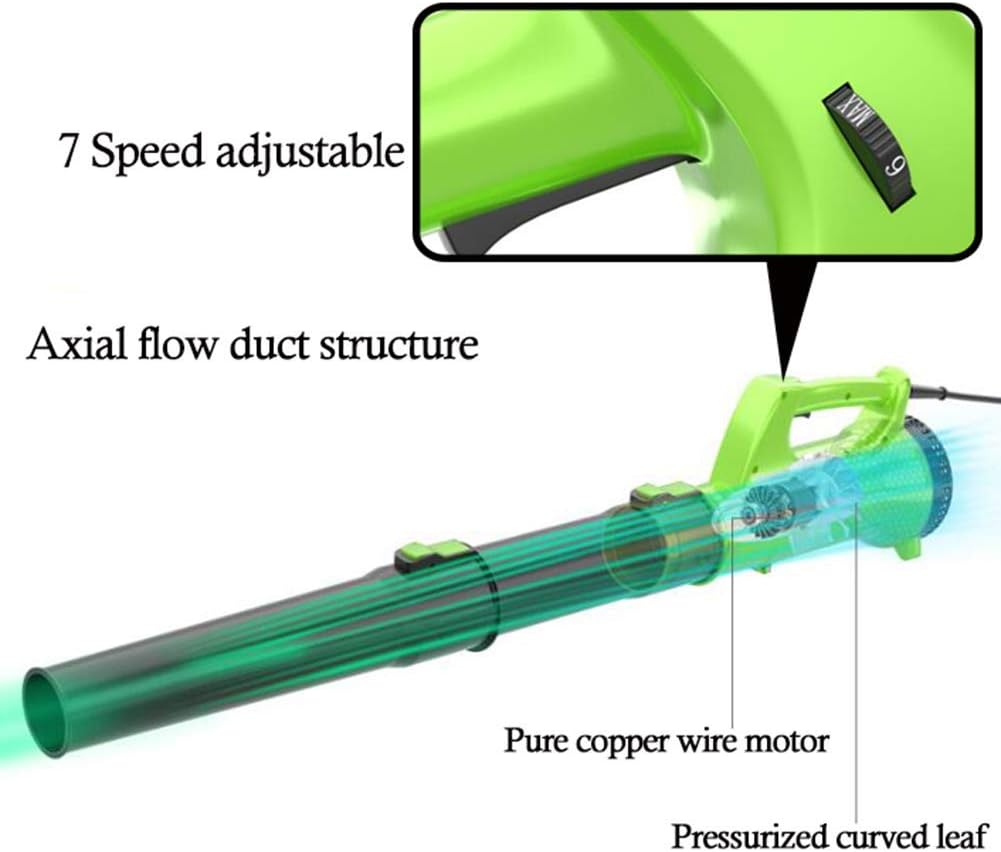 This blower adopts an axial flow duct structure, which can provide strong wind power, which is very suitable for cleaning porches, terraces, sidewalks, decks and garages, and even light snow! specification: Product name: Electric leaf blower Power: 3600W, 4500W, 5500W No-load speed: 22000rpm, 25000rpm, 30000rpm, Peak air output: 12m3/min, 15.5m3/min, 18.9m3/min Built-in power cord length: 3 meters Speed regulation: 5 speed regulation Packing includes: 1×leaf blower, 2×air collector note: Since it is a manual measurement, there may be an error of 1-3cm, please understand! The product may have slight chromatic aberration due to the shooting light, angle, and different displays. Please understand!