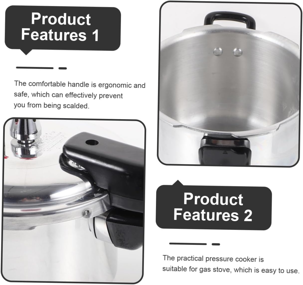 Package List 1 x household pressure cooker Features -Material:Aluminum alloy gas pressure cooker - Size: 18.00X4.00X4.00cm/7.07X1.57X1.57in (Handle) cook pressure cooker - Size: 16.00X16.00X13.00cm/6.29X6.29X5.11in (Pot) pressure cooker induction cooking - High efficiency and energy saving, cooking food for your families in the shortest time, saving time and labor pressure cooker stovetop. - The integrally formed bottom of the pot has rapid heat conduction and uniform heating pressure pan - ColorAssorted Color pressure cooker - Great size for small households and side dishes, or anywhere space is , easy to use cooks essentials pressure cooker - The pressure pot is made of sturdy material, which is and for the long-term use kitchen pressure cooker - This pressure cooker is suitable for steaming, braising, making soup, stewing, boiling, which is a perfect cooking helper mini pressure cooker.Goods Informationsmall pressure cooker Made of aluminum alloy materials, you can enjoy happy meal time with this high pressure cooker.kitchen pressure cooker Perfect for making beans, meats, vegetables, soups, and more.cooking pressure cooker If you like stew food, then you miss our pressure cooker.gas stove pressure cooker This pressure pot is made of material, reliable and , which can be used to stew chicken soup, vegetable soup, etc.pressure cooker large Suitable for all types of stoves