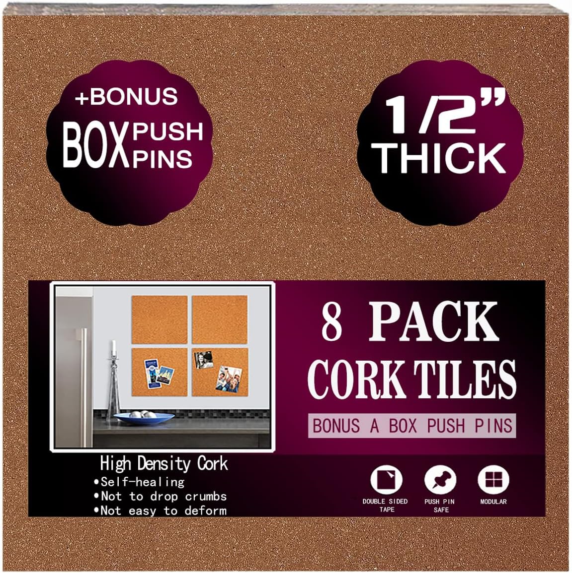 Size:10pack NOTE: Surface must be clean and dry before installation. The sticky position must be marked before installation. 【Tips】 It is suitable for glass surface, smooth ceramic tile, white paint wall, wooden board, smooth marble, Matte ceramic tile, etc. Please make sure what kind of surface you want to decorate. Why we were chosen VERY THICK - 1/2" Thickness provides great grip for thick enough to hold push pins and so that push pins will not go through your boards & damage your wall.standard pushpins uick and easy mounting in any space,Self-stick adhesive covers the entire back of each cork board, quick and easy mounting in any space, glue can adsorption cork board and metope perfectly, do not need to worry colloid and cork or metope stripping. (Make sure to clean surface area of wall before using) Create your own customized shape as Modular cork tiles create a durable, noise absorbing display surface; create your own design,Make any space more beautiful, The tiles designed to handle countless thumbtacks and pins. Be creative and use as a memo / notice board or vision board by adding pictures, notes and goals. BONUS FEATURE: Two box Push Pins INCLUDED Buy now to Put all your important notes right in front of you.