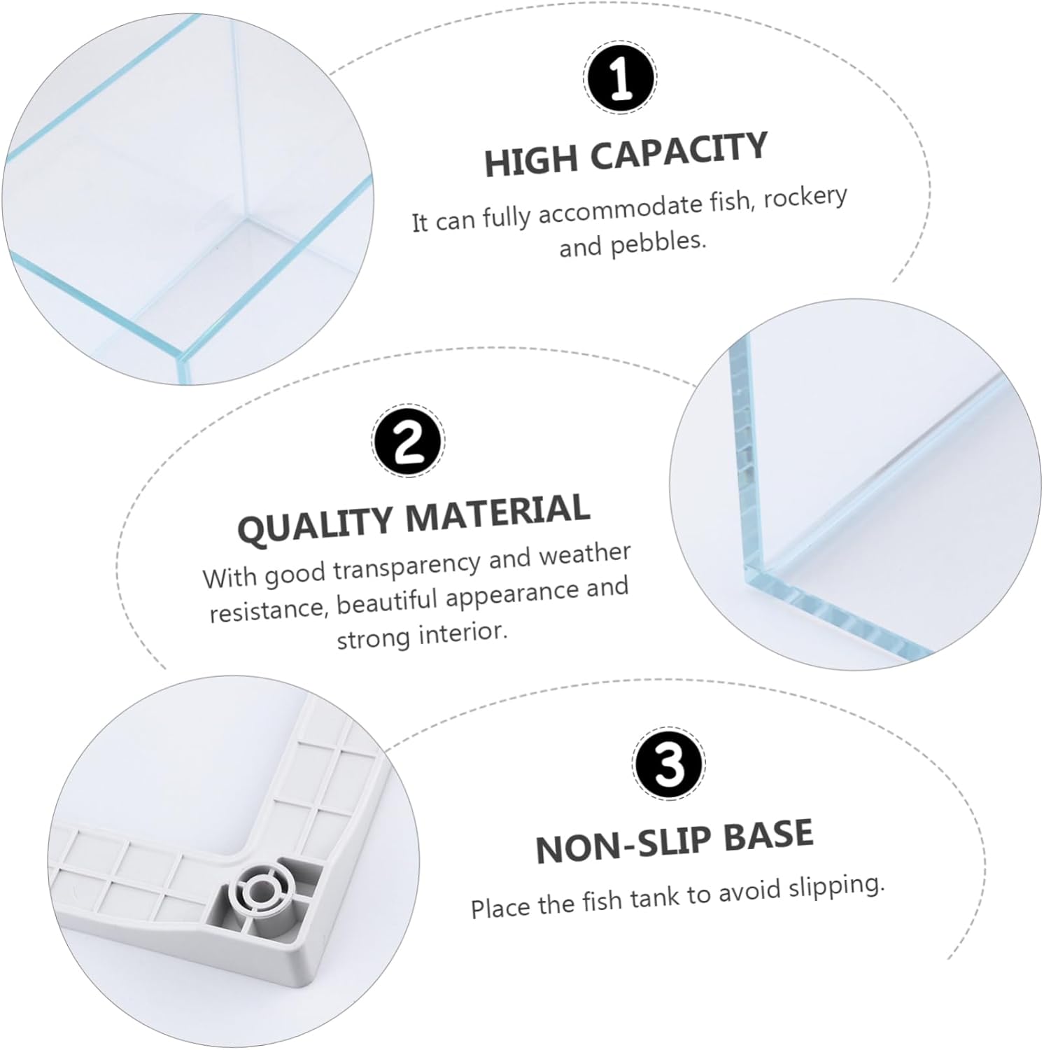 Package Include 1 tankGoods InformationFish Container 86inch.Fish Tank Cube Features - ColorTransparent- Material: Glass.Aquarium Supplies 04x6.Glass Terrarium With transparency and weather resistance, beautiful appearance and strong interior.Home Decoration - From , to event planners, everyone appreciates a fish tank.Mini Aquarium Create a beautiful environment for the fish and bring deep sea environment for your home.Transparent Fish Tank - A fish tank is an help US feel and to nature.Glass Fish Tank - Ultra- glass to maximize content visibility.Glass Cube Convenient for you to approach your pet, observe the pet's dynamic. - Each features thick glass walls and weighted base to ensure durability. - This fish tank is totally waterproof so it can hold maximum amounts of water without leaking. 29x7. - Size: 23x16x20cm/ 9