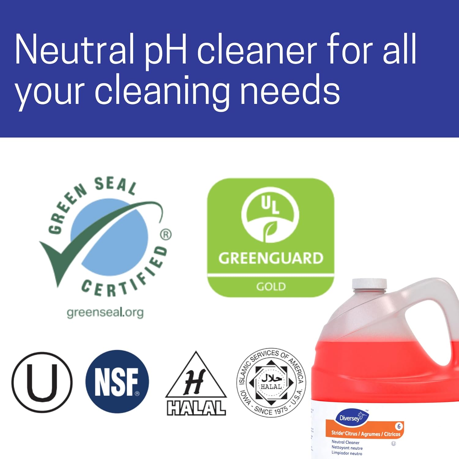 Stride Citrus Neutral Cleaner is an effective, neutral concentrate formulated for everyday cleaning of floors and other hard surfaces. The non-alkaline formulation dries film-free, no rinsing required. Leaves behind a fresh, citrus scent. The cleaner's pH-neutral formulation will not dull floor finishes.