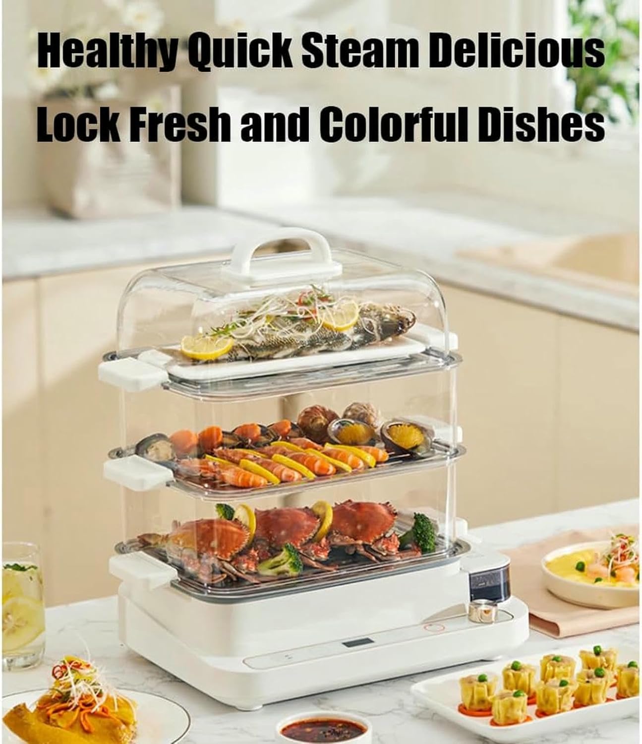 The 220V Timer 2 Layer Home Use Electric Steamer is incredibly easy to use, even for those who are not kitchen-savvy. The user-friendly interface and clear instructions make it a breeze to prepare your favorite breakfast items. Whether you want perfectly boil ed eggs , steamed veggies, or fluffy idlis, this steamer can do it all.Specification:Product name: Multifunctional electric steamerRated power: 900WRated voltage: 220V~Rated frequency: 50HzProduct size: 355*434*280mmPackage includes:1*Main base1*drainage tray1*steaming tray1*steamer1*pot lid1*External water tank cover