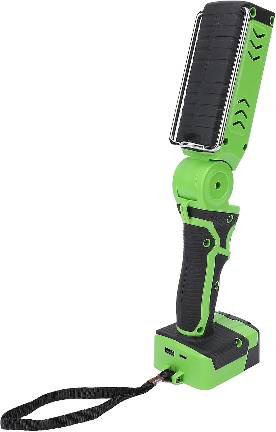 [Innovative Portable Design] Featuring a 180 degree adjustable head and sturdy metal hanging hook, this flashlight adapts to any workspace with ease. the ergonomic silicone handle provides a comfortable grip during extended use, while the compact folding design makes storage and transport effortless. use it hands free by hanging or position it precisely for optimal lighting angles in tight spaces. [Flexible Battery Compatibility] Designed to work seamlessly with dcb200 dcb201 dcb203 dcb204 and dcb206 batteries (sold separately), this work light offers portability without cord restrictions. the universal battery compatibility means you can use it with various power tools' battery systems, making it ideal and diyers who value flexibility and convenience in their workspace. [Dual Function Power Bank] Beyond illumination, this work light serves as a practical power source with its usb type c charging port (5v 1a). charge your smartphone, tablet, or other devices while working or camping, with the ability to power two devices simultaneously. this multifunctional feature makes it an essential tool for both professional and recreational use in various environments from workshops to outdoor adventures. [Emergency Ready with Sos Mode] Stay safe during emergencies with the built in red strobe sos mode that emits powerful warning signals. perfect for roadside breakdowns, nighttime repairs, or outdoor activities, this feature enhances safety by alerting others to your presence. its high visibility strobe function helps protect you, your vehicle, and your property in low light or hazardous situations. [Powerful & Versatile Lighting] This cordless led work light delivers an impressive 2400 of brightness with 2 adjustable levels, providing optimal illumination for any task. whether you're working in a dimly lit garage or need reliable lighting during outdoor adventures, this flashlight ensures crystal clear visibility in any environment. the customizable