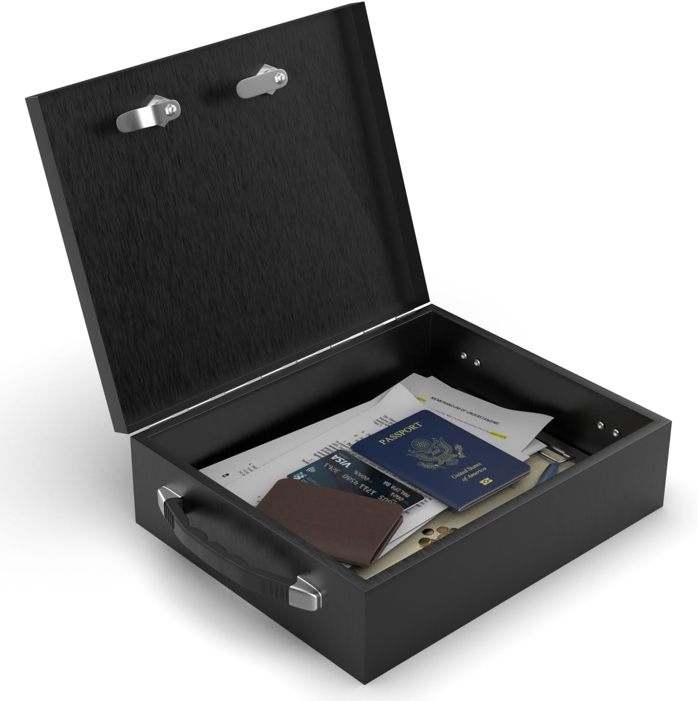 The Suber Fire Retardant Security Steel Key and Combination Lock Box is designed to store and protect important documents and valuables. It is double insulated and lab tested at 1550 Degrees for 15 minutes with documents inside. It includes a key lock with two keys as well as a combination lock. This box can be locked by key, combination lock, or both if desired. Store valuables such as vital documents, medicine, money, firearms, jewelry, and more.Strong handles are on both sides of the box for carrying when filled. Measurements are 13.25" x 10.75" x 4". Beige and Black options.
