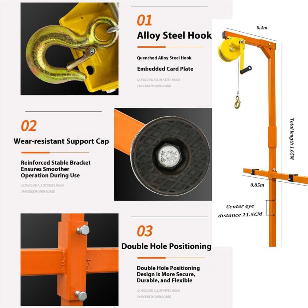 The air conditioner lifting bracket is engineered for stability and reliability, ensuring a secure lifting process for your external unit. This essential tool features a screw-fixed pivot point that prevents sliding, making it a safe choice for both installation and maintenance tasks. Equipped with a self-locking winch that offers two-way locking, it enhances safety during operation. The triangular bracket design further contributes to its stability, making lifting and positioning your air conditioner easier than ever. Constructed with a thickened steel pipe column, this lifting tool is built to last, providing durability for repeated use over time. With a load capacity of up to 150 kg and a cable thickness of 4 mm, it is suitable for various air conditioner outdoor units, ensuring reliable performance in both residential and commercial settings. The winch model supports lifting heights of 10-30 meters, making it versatile for different installation scenarios. The package includes a special hanger and pulley designed specifically for air conditioning installations, along with a wire rope to facilitate the lifting process. Its removable installation feature simplifies setup, saving you time and effort. Please note that slight color variations may occur due to monitor differences, and manual measurements may vary by 1 to 3 cm. For any inquiries, feel free to reach out, and we will respond within 24 hours.