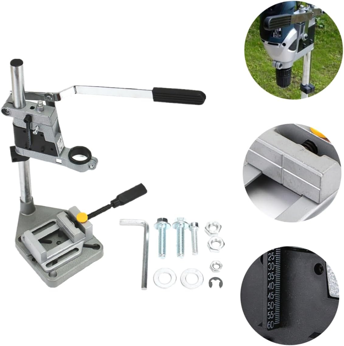 Package List 1 x bracket 1 x flat nose pliers 1 x wrench 1 screws Features - Adjustable clamping range: 38mm-42mm Drill Press Stand. - Color: Silver Drill Press Floor Stand. - Material: Aluminum alloy, plastic, steel Single Hole Drill Rack. - Size: About 50.00X14.50X14.50cm/19.65X5.70X5.70inch Drill Press Table. - This drill stand allows for much more accurate drilling than hand-held operation Stand for Drill Press. - Great for rotary tools, power Drill, bench clamp, for home garage use Bench Clamp Holder. - This is a new adjustable drill stand, for shop or home use, hobby tools Adjustable Drill Stand. - This drill stand is great for holding your drill steady during working time Drill Press Rack - It is made of aluminum alloy, plastic and steel materials and has a Drill Press Holder.Goods DescriptionBench Clamp Holder This accessory is great for any DIY lover or professional.Stand for Drill Press The drill press stand is a professional-grade tool, great for holding your drill steady during use, allowing for much more accurate drilling than hand-held operation.Drill Press Floor Stand Designed for use with any power drill with collar diameter ranging from 38mm to 42mm