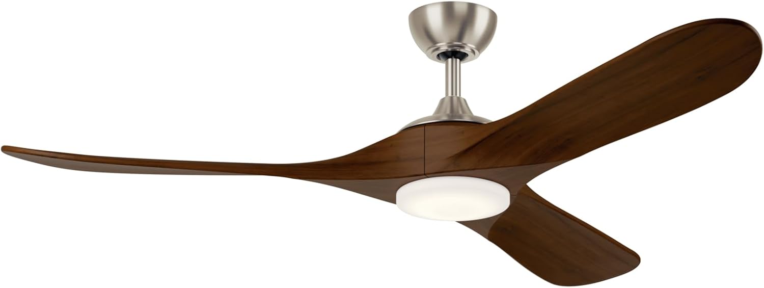 Featuring solid wood blades, soft curves and sculptural form, this ceiling fan easily coordinates with an array of modern style environments. Its damp rating makes it ideal for most indoor and outdoor applications while its large diameter size helps circulate a good amount of air to create a desirable cooling effect in larger spaces. As versatile as it is functional, its included light cap provides the option to utilize the fan with or without the light source while its three real wood carved blades enhance its overall aesthetics. Like patterns in nature, its solid wood blades offer a unique and distinct wood grain textures that can vary from fan-to-fan – sculptured into a true piece of artwork in your space. It comes with a Limited Lifetime Warranty and is cETLus Safety Listed for Damp Locations. To clean, simply wipe with a damp cloth, avoiding moisture in or near the motor housing.