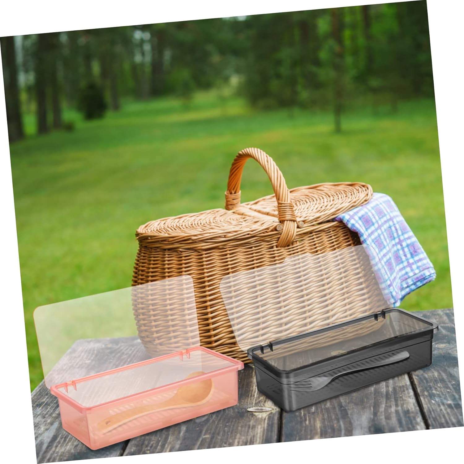• Travel container-- flatware plastic tray with lid kitchen cutlery drawer organizer silverware countertop storage container tableware storage organizer multiple usage scenarios: place on the kitchen table, drawer, or cabinet to tidy up the kitchen environment.