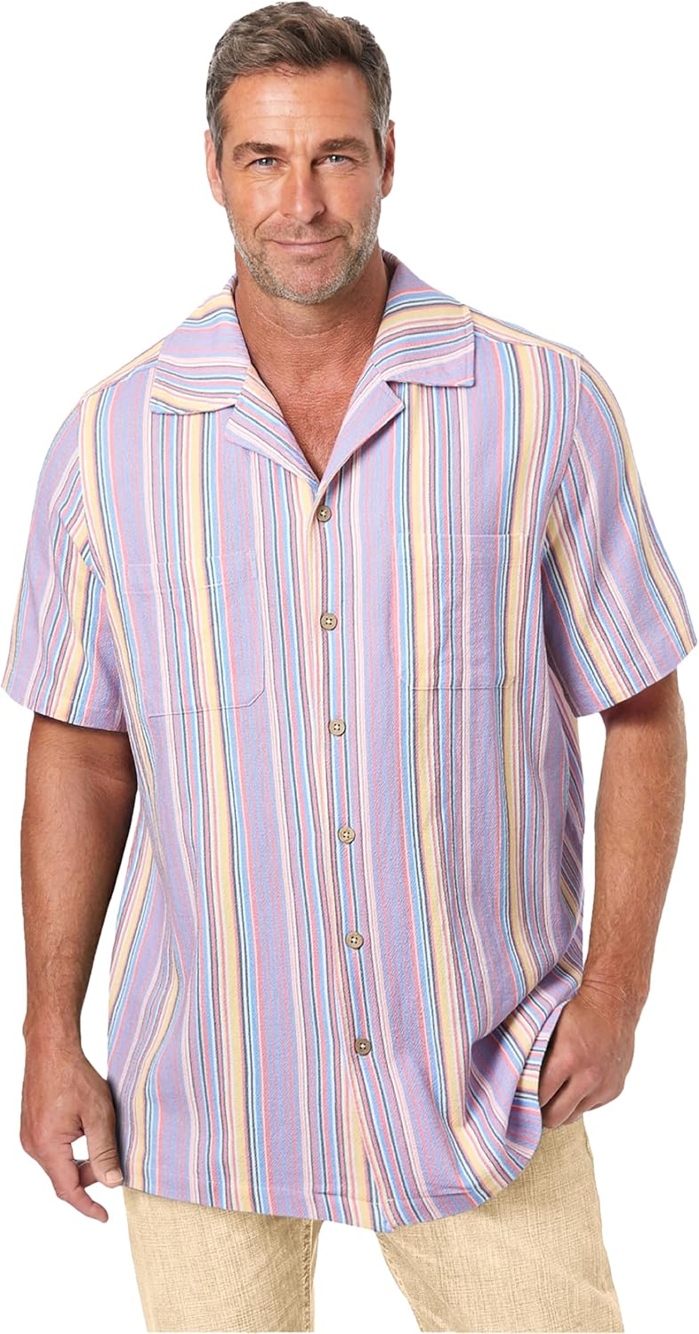 Let the summer vibes settle in with our short sleeve Gauze Camp Shirt. Made from breathable cotton gauze, you're sure to dry quickly while staying cool all season long. Don't forget to pack this shirt for your next vacation or beach day too. Relaxed fitbr>Quick dryingbr>Camp collarbr>Coconut button frontbr>Big abt. 34"; Tall abt. 36"br>100% cottonbr>Machine washbr>Imported