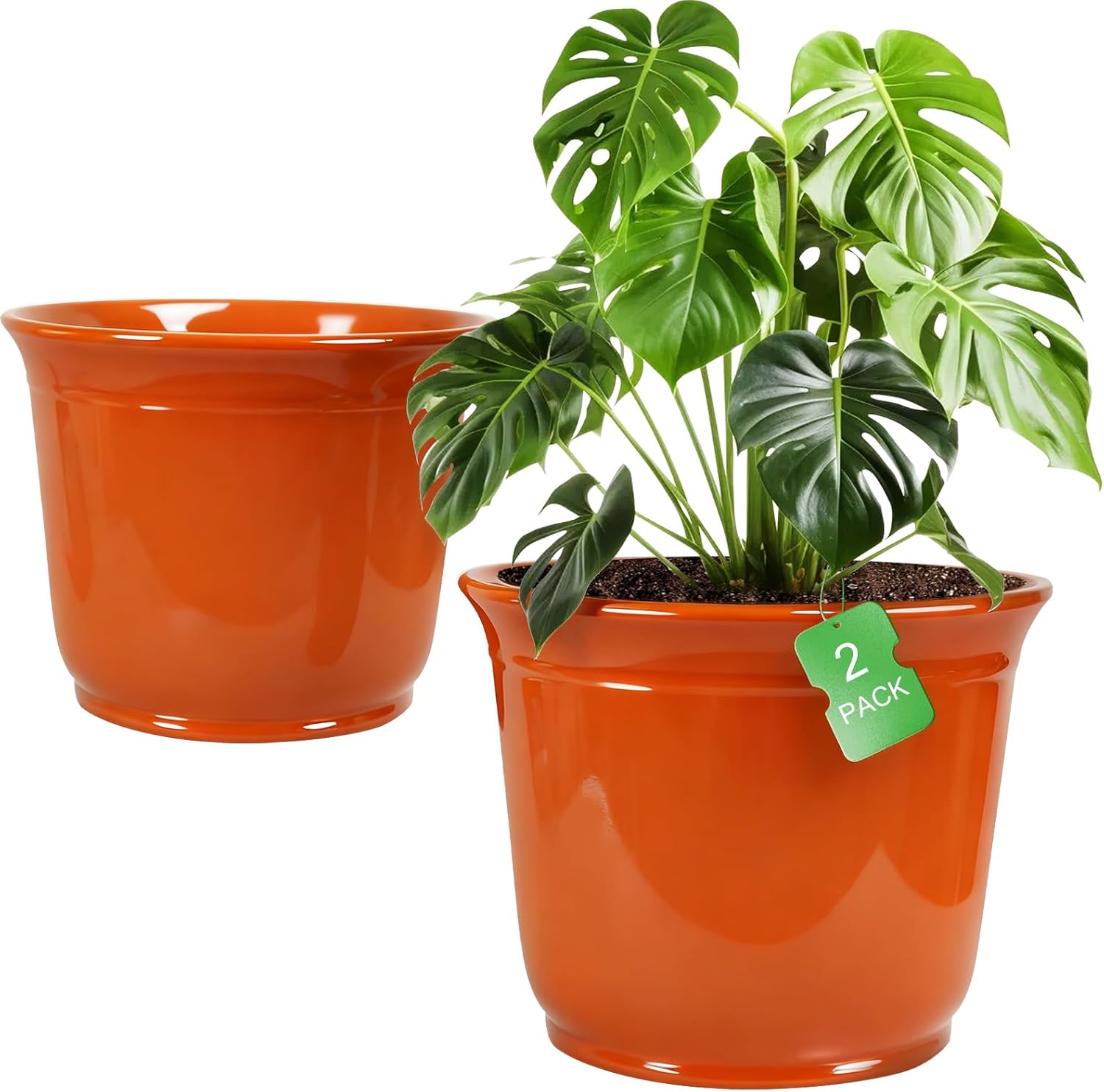 WEICHENGXING Large Plastic Pots for Plants, 2 Pack 18 Inch Planters for Outdoor Plants, Durable and Lightweight Flower Pots, Big Outdoor Planters Weather Resistant & UV Resistant, Orange