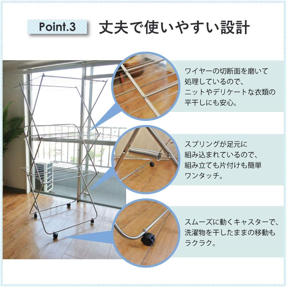 The spring action is built into the foot so it can easily spread the power of a woman alone. When folded, it is approximately 4.3 inches (11 cm) wide, and it will not take up much space even when it stands up.