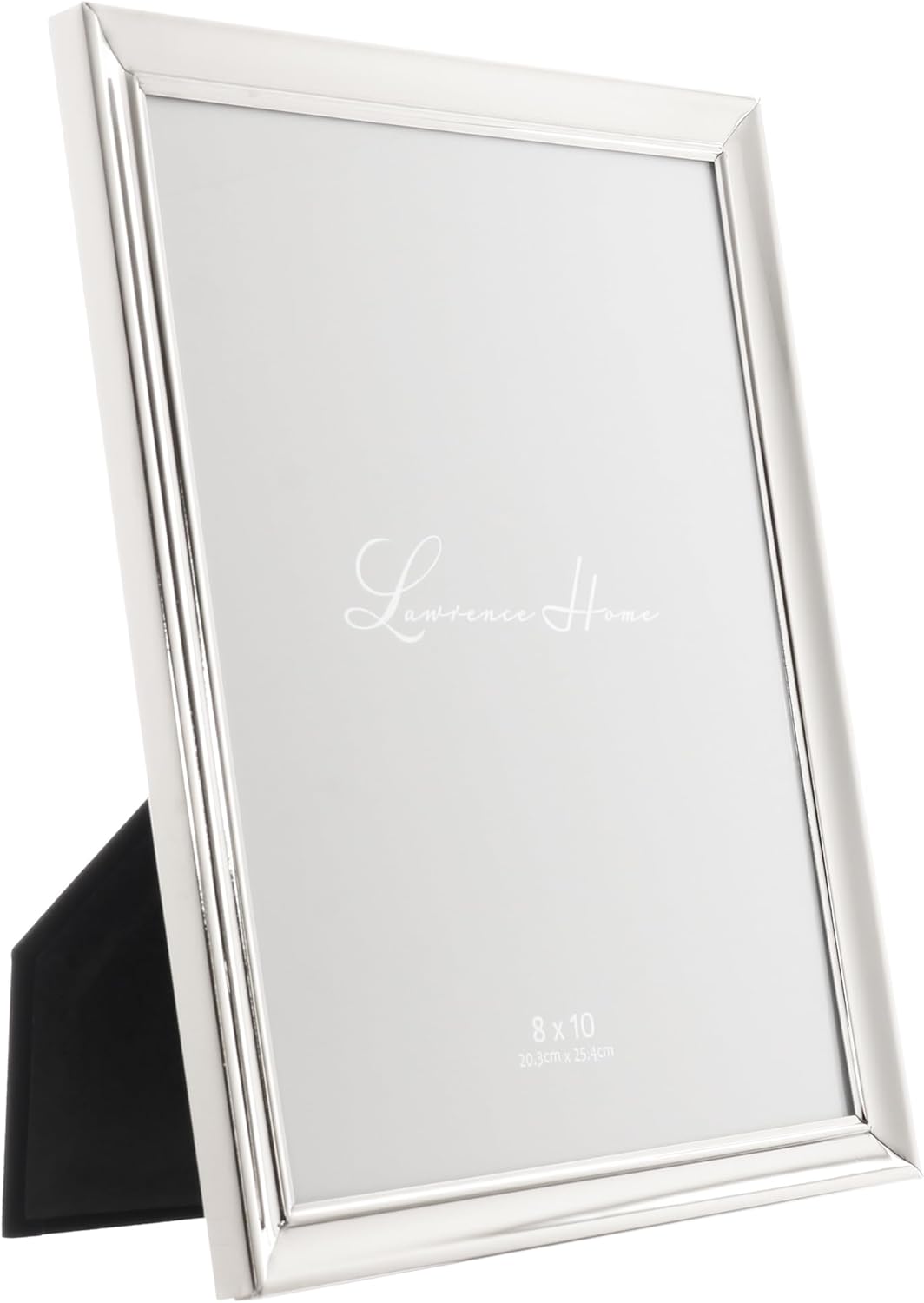 High quality heavy weight metal picture frame made with exceptional workmanship. Elevate your home décor with this sophisticated timeless design that will complement any room. High quality easy open black velvet backing comes with an easel for vertical or horizontal table top display and hangers for wall mounting. Includes glass to protect your photo, and is individually boxed.