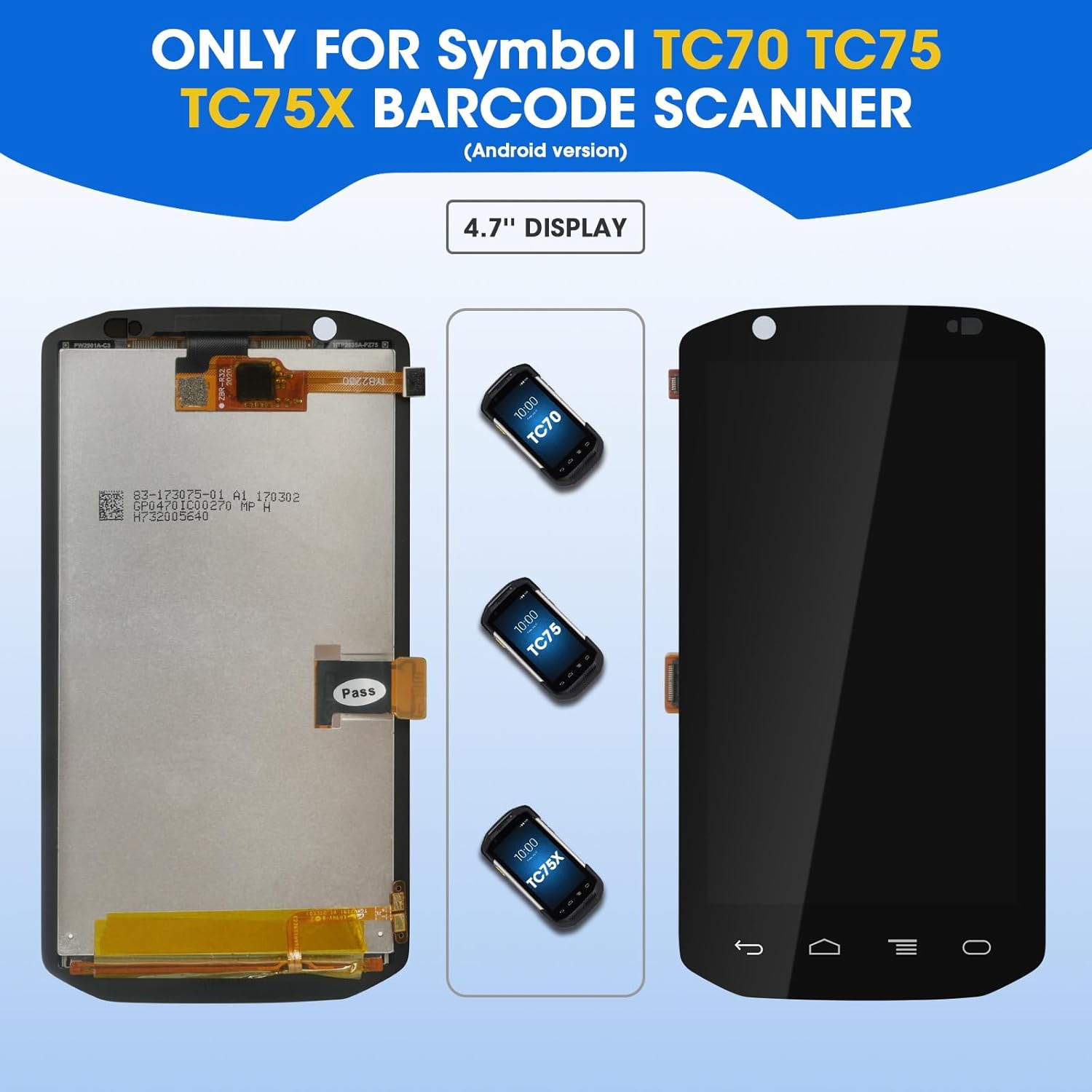 This LCD screen replacement with touch digitizer is suitable for Symbol TC70 TC75 TC75X barcode scanner handheld mobile computer (Android version). Specifically designed to replace and be highly compatible with TC70 TC75 TC75X defective LCD screen touch digitizer (Only available for Symbol). Please check the device model carefully before ordering to avoid incompatibility and causing unnecessary trouble to you. Specifically designed to replace damaged TC70 TC75 TC75X LCD screen touch digitizer. It can repair screens with touch response, display misalignment, and pixel distortion, and solve problems such as cracked LCD screens, wrong colors, dead pixels, old or frozen LCD screens, etc. All our TC70 TC75 TC75X LCD screen touch digitizer replacement undergo strict quality testing before shipment, ensuring that the screen has no scratches, no dead areas, no dot pixels or lines and other issues, you can use it with confidence. Our LCD screen has high color saturation, high resolution, high brightness, and wide color gamut, presenting high-definition content. The high-precision touch screen is responsive and has no lag, making it smoother to use. Please test the TC70 TC75 TC75X LCD screen before installation to ensure that it can be used normally. Installation is not recommended for non-professionals.