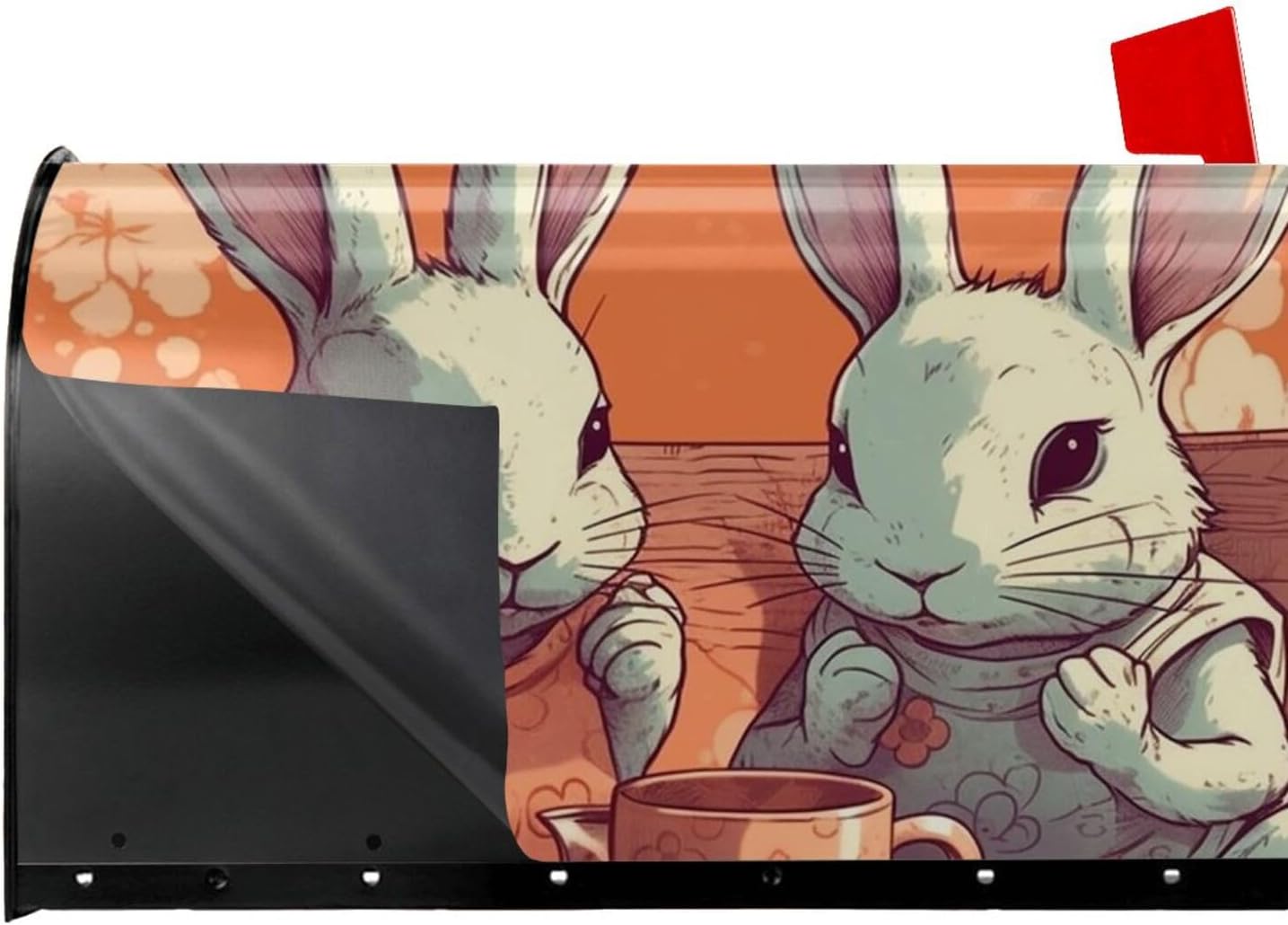 Mailbox Cover Mailbox Wraps Post Letter Box Cover Rabbit and Cup Mailbox Post Cover for Garden Yard Decor 25.5x21 in