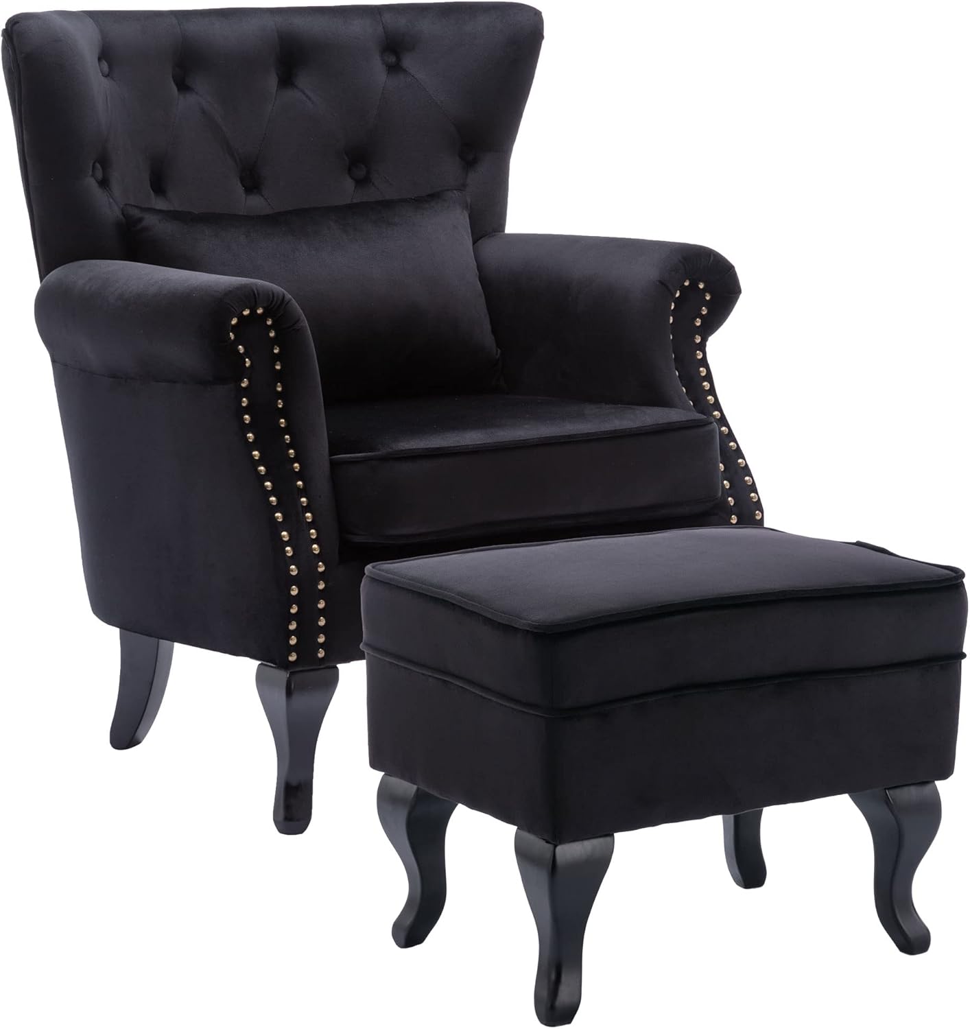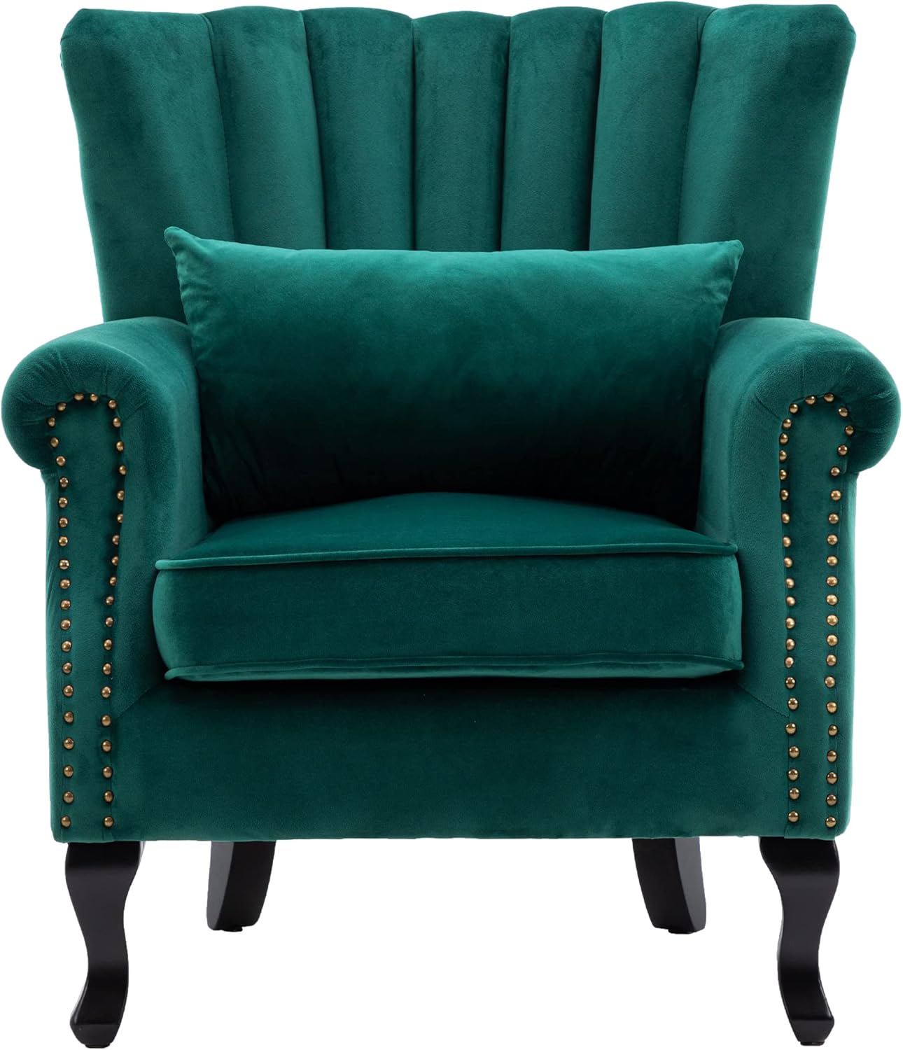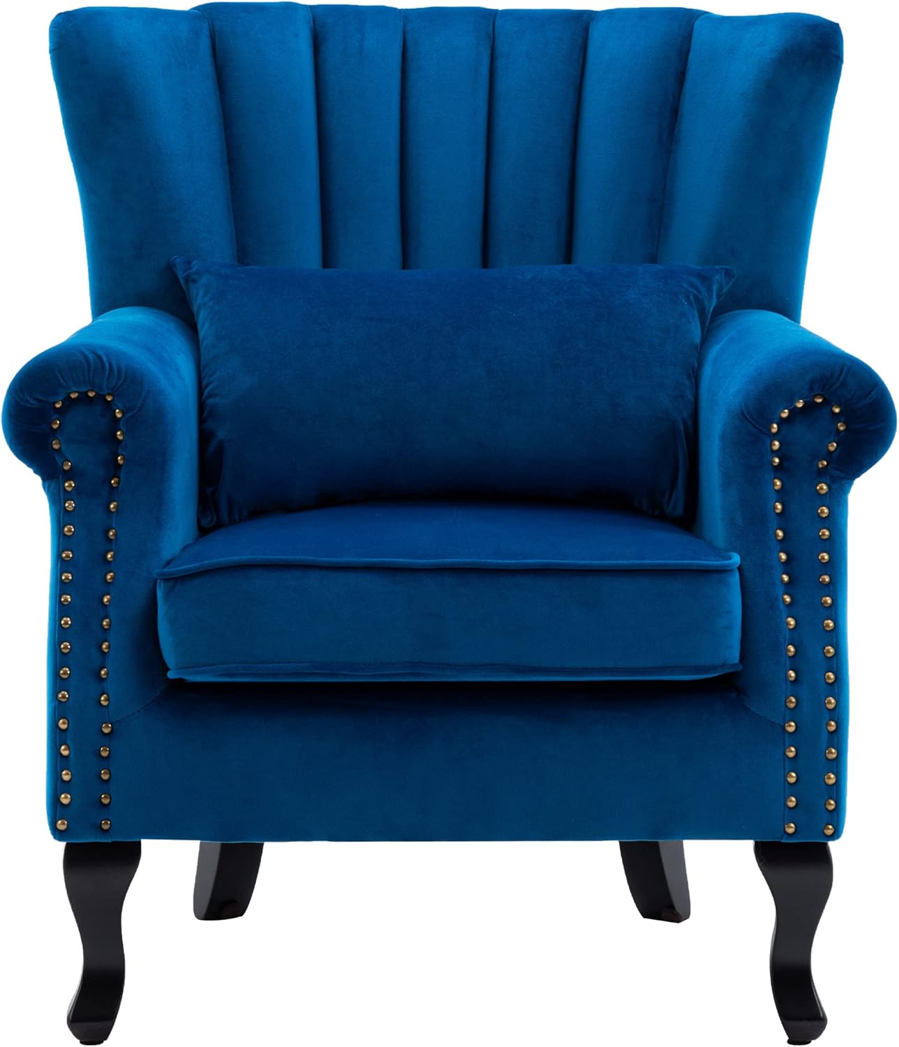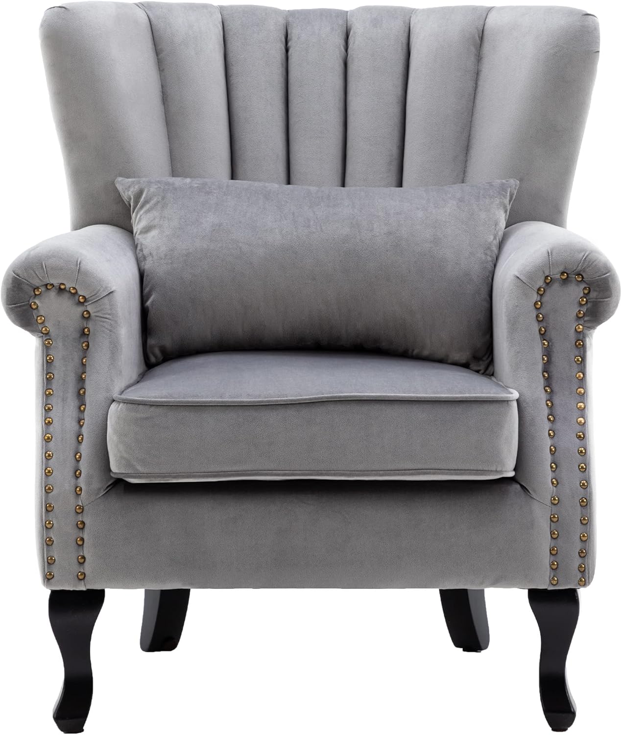 DM Furniture- A manufacture aims to make qualify and affordable accent furniture, office furniture to serve majority of people .This accent chair features timeless, elegant and perfect for any lifestyle. The roll arm and wing back design with nail head trim and tufting detailing make it perfectly as a club chair. This arm chair is an classic decor for your living room, den, bedroom, entryway or any other room in your home. It will enhance your room decor when paired this accent chair with sectionals, couches or loveseat. It will accompany you anytime when reading, chatting or relaxing.Details:Upholstery Material: Velvet FabricSeat Fill Material: High density sponge Back Type: Tight back/Wing backFrame Material: Solid woodLeg Material: Solid woodProduct Size: 31.5'' W x 30.7' D x 32.3” HPacking size: 30'' L x 22.5' W x 24.5” HArm Height - Floor to Arm : 24.4''Seat Height: 16.1”Seat Width: 19.7Seat Depth: 20.5”Net /Gross Weight: 28.6 /33.5 lbsPackage Includes:1 x Accent Chair1 x Pillow1 pack of accessories parts
