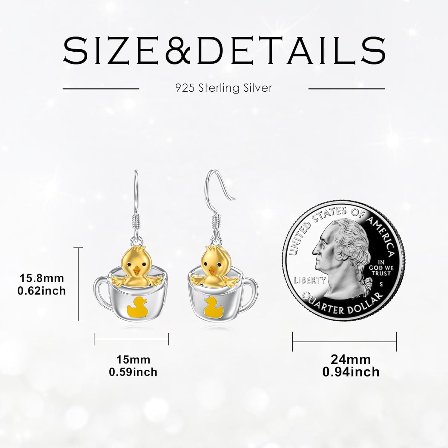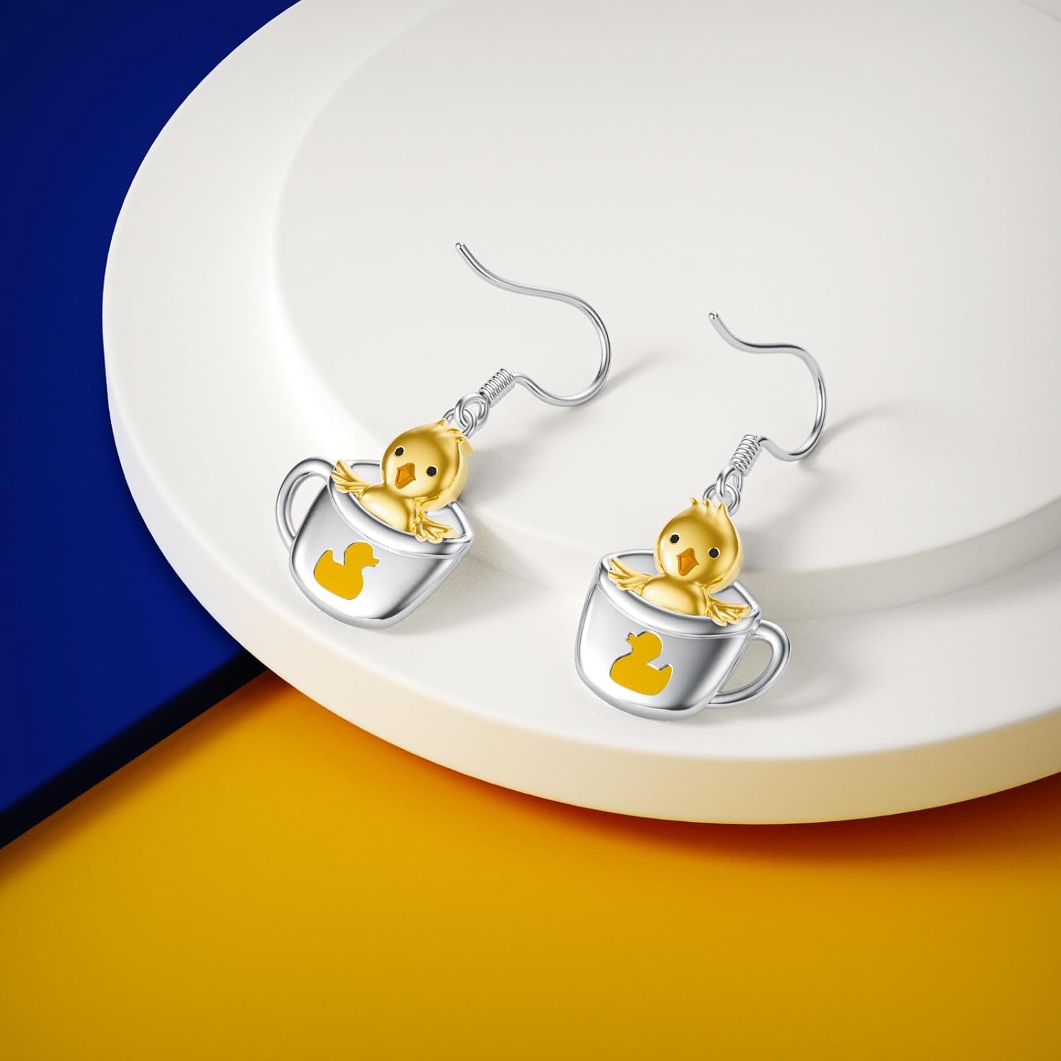 Duck cup earrings are a combination of cute and fun elements, giving people a relaxed and pleasant wearing experience. Duck earrings cleverly combine the elements of ducks and cups, allowing people to feel a touch of childishness and humor in daily life. Duck cup dangle earrings can also be used as accessories for daily wear, adding elegance and fashion to your appearance. Whether you wear it yourself or are a duck lover, duck earrings are a good choice.Duck cup dangle earrings are made of 925 sterling silver, and the duck earrings are decorated with cups and ducks. Duck dangle earrings are anti-allergic, anti-rust, anti-nickel, lead and cadmium. Duck cup earrings are suitable for long-term wear, durable and not affected by any allergic elements. Duck dangle earrings come with a beautiful box and polishing cloth.Duck cup dangle earrings come with an exquisite box, sterling silver duck earrings are ideal jewelry to express love and blessings to duck lovers and duck jewelry lovers. Duck dangle earrings are a jewelry surprise for relatives and friends on Mother's Day, birthdays, anniversaries, Christmas, wedding anniversaries and Valentine's Day.