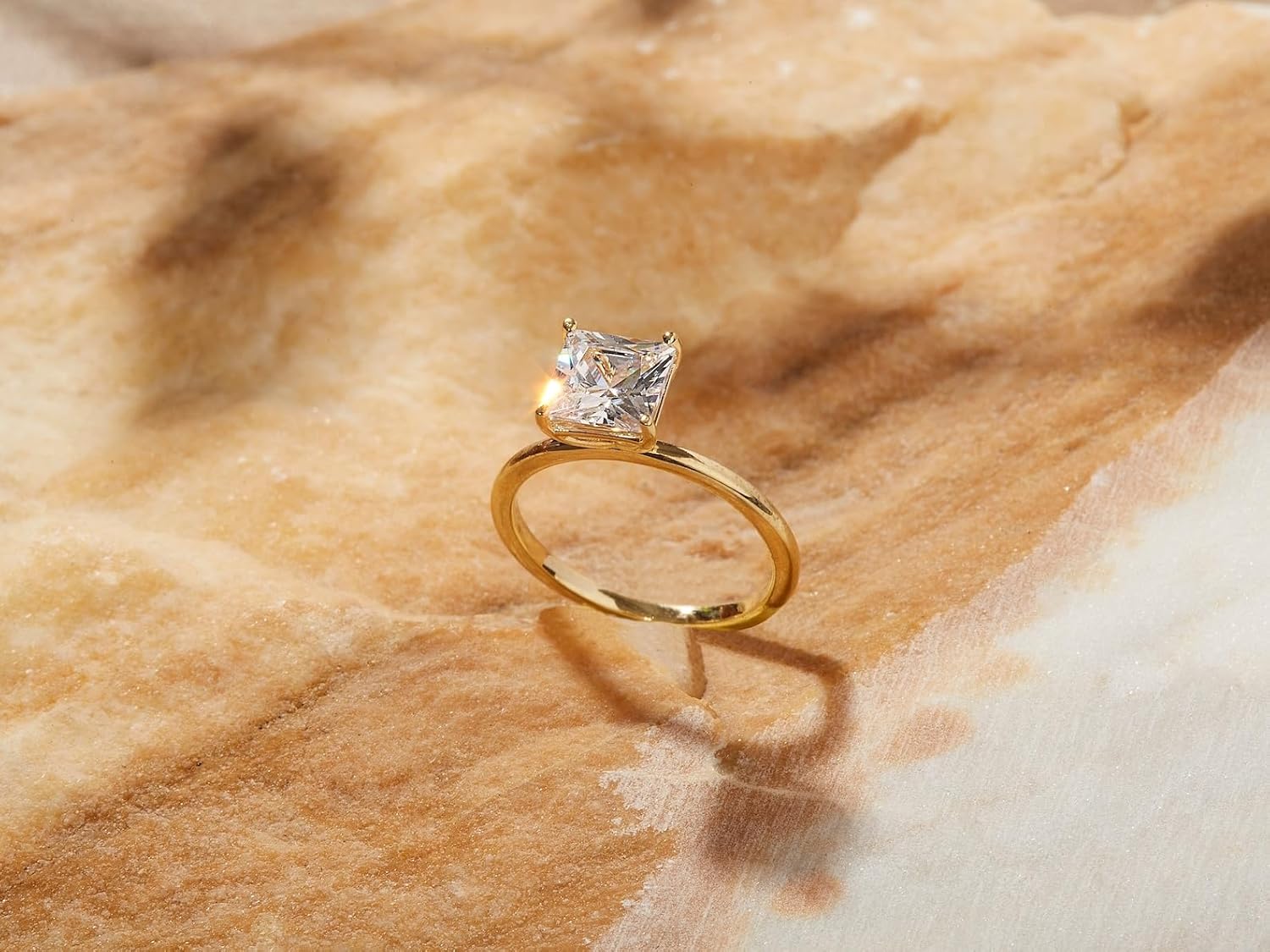 Celebrate love with this Princess Cut Moissanite Engagement Ring, designed to reflect elegance, simplicity, and modern romance. Featuring a brilliant 1.50 CT princess-cut moissanite, this solitaire ring offers exceptional sparkle and a classic square silhouette that never goes out of style. timeless princess cut moissanite solitaire set in 14K solid gold. Designed for engagements, promises, and meaningful gifting moments.✅ Product Specifications / AttributesStone Type: MoissaniteStone Shape: Princess CutTotal Carat Appearance: 1.50 CTMetal Type: 14K Solid GoldSetting Style: SolitaireRing Style: Engagement / Promise / MinimalFinish: High PolishIntended Use: Engagement, Promise, Anniversary
