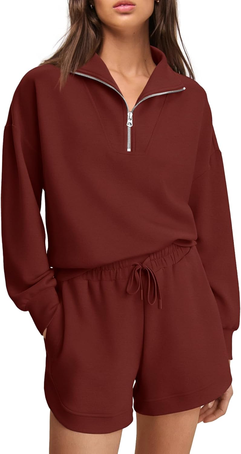 SENSERISE Women 2 Piece Outfits Sweatsuit Oversized Half Zip Pullover Long Sleeve Top Shorts Set with PocketsFeatures: 1. Tracksuits for women, lounge sets for women, oversized long sleeve half zip pullover and matching high-rise, wide-leg shorts for the perfect done-in-one look no matter the activity.2. Our shorts sets women 2 piece outfits is perfect for creating an understated yet chic look.3. The soft feel material is just what all womens need, suitable for most body shape, fashion and casual style make you looks more cool.4. It’s very breathable and soft, very comfortable but not sloppy, can’t wait to wear this on lazy weekends!6. Absolutely love this, it's my travel go to outfit. You can dress it up or down easily.