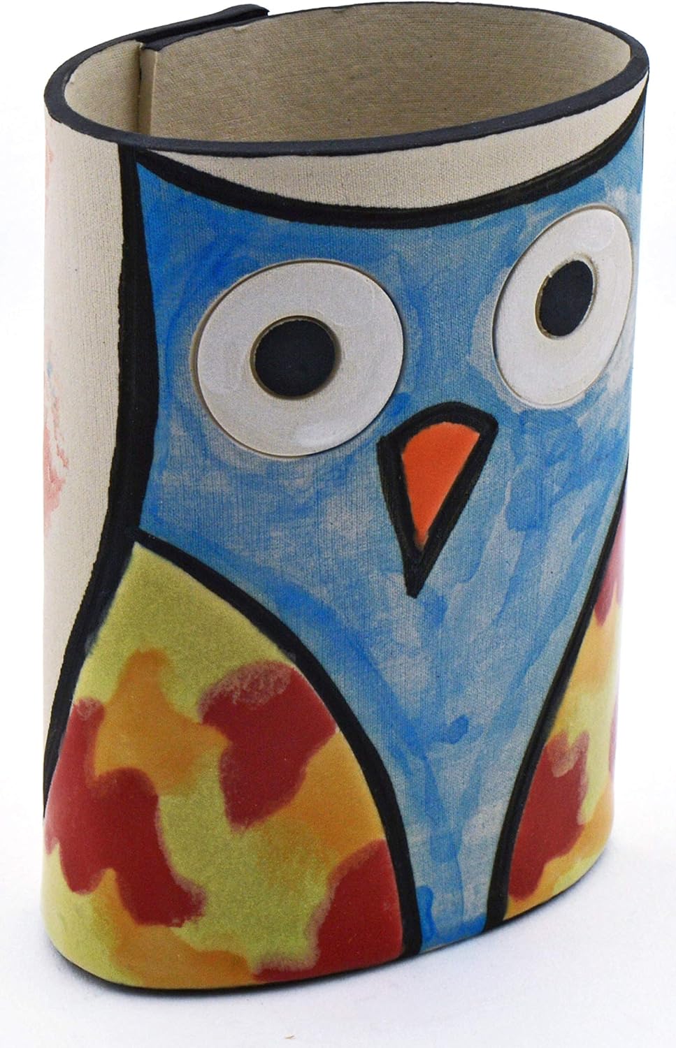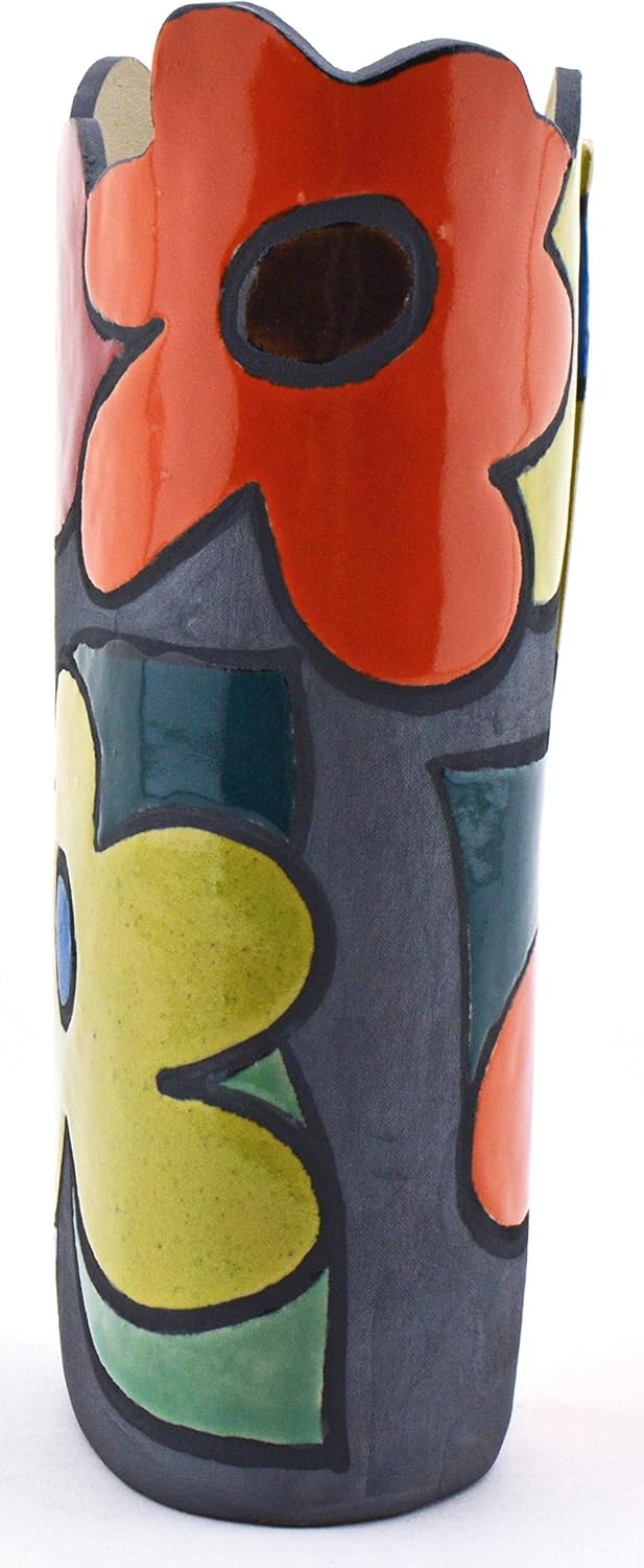 Ceramic decorative SMALL VASE handmade and handpainted with decoration Foc-Art. Piece of ceramics made in Catalonia by artisan way, made with FINE REFRACTORY STONEWARE. It starts by giving shape to the clay mass using different artisanal techniques, which are baked in a first firing at 980ºC. Subsequently, the piece is decorated with different colored enamels. The enamels that are used are also made by hand. Once the piece is glazed, it is baked a second time at 1280ºC obtaining the hardness and final coloring. The result is a unique and original figure, perfect for decorating your home or also as an ideal gift. Attention: Handmade and handpainted pieces. The colours, shape and size may suffer slight changes. Clean with a dry cloth.