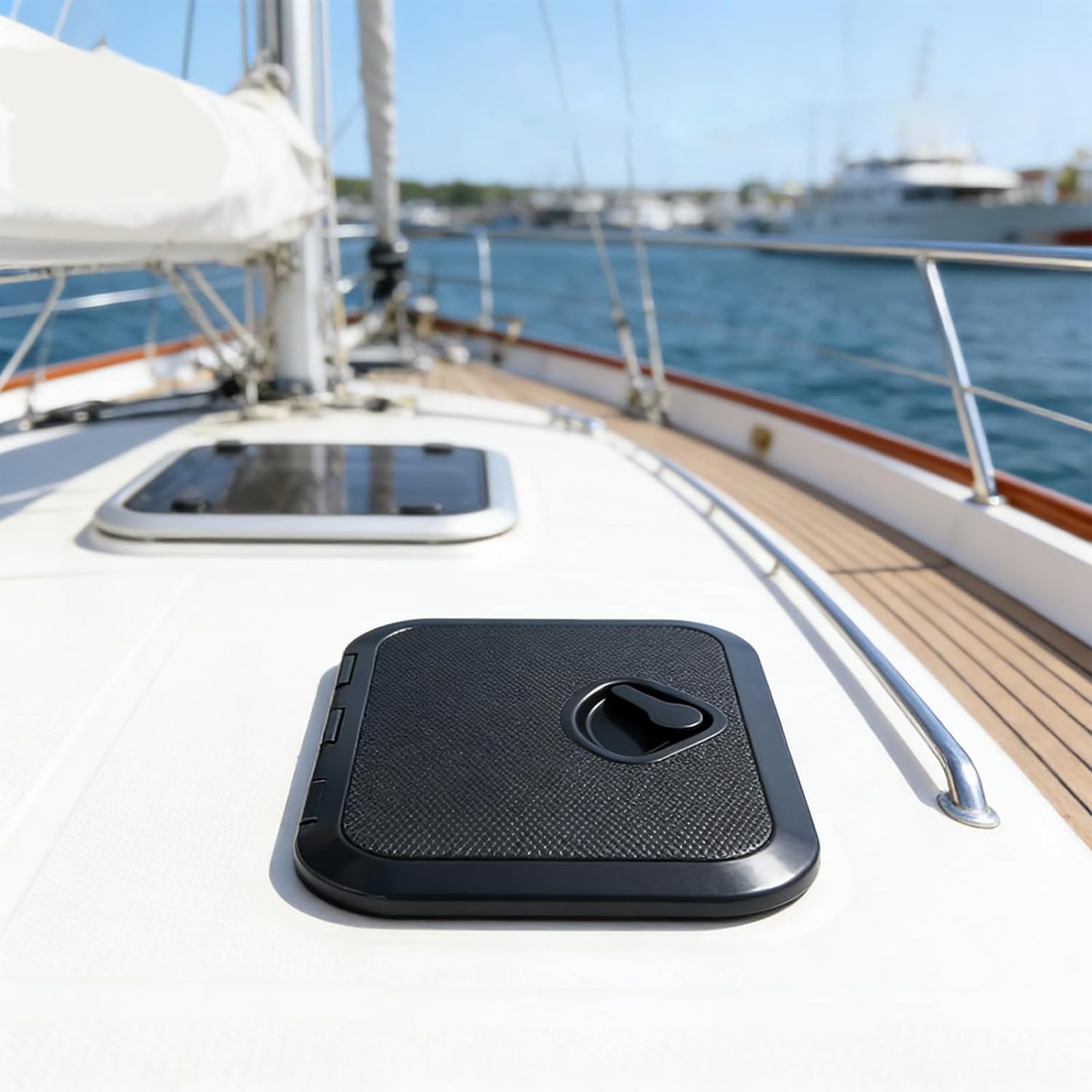 Sturdy 15 Inch Watertight Deck Panel ABS Construction Easy Installation Yachts Campers Features: UV Polymer Construction: Crafted from resilient ABS polymer, this 15 inch marine deck cover delivers strong UV resistance, undergoing rigorous aging tests to preserve color and form stability for prolonged outdoor exposure Ergonomic Two Handle Setup: Features two user friendly handles for effortless use, allowing smooth and safe access in water conditions while enhancing inspection convenience Wide Compatibility: The 270x375mm standard dimension fits various boats, campers, and trailers, ensuring straightforward installation and adaptable placement in confined areas Secure Barrier: Equipped with a sturdy rubber gasket to water intrusion, safeguarding interior contents from wetness during harsh weather or turbulent waters Robust Design: Verified to up to 180kg, this resilient deck cover maintains dependable functionality for routine tasks or urgent situations on vessel Specifications: Component: ABS Size: about 270x375mm / 11x15inch Package Includes: 1xDeck Cover Note: 1.Please allow 1-2cm errors due to manual measurement, make sure that you do not mind before you order 2.Due to the difference between different monitors, the picture may not reflect the actual color of the item