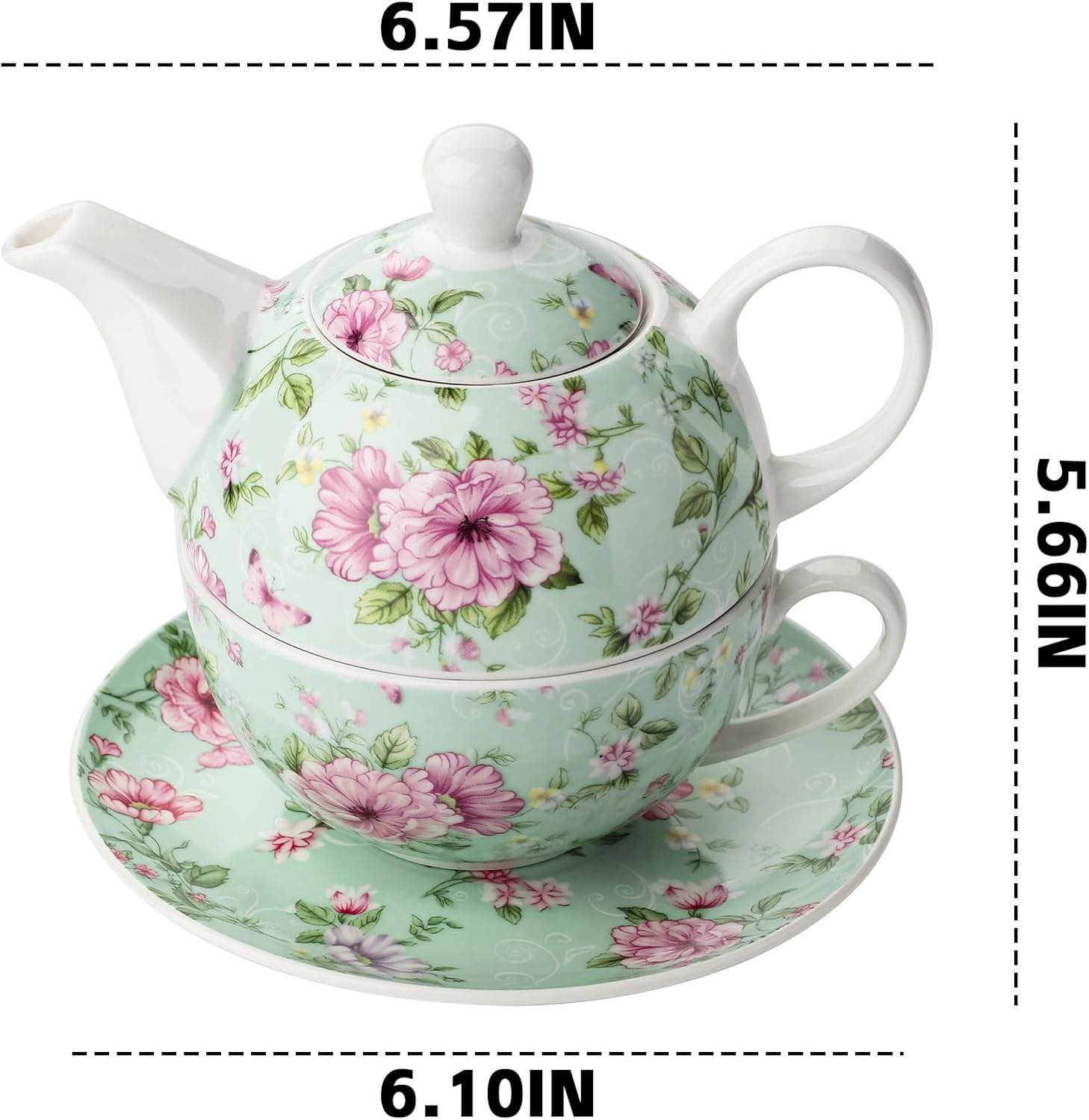 Material: Ceramic Package Includes: Teapot x 1 Tea Cup x 1 Saucer x 1 Gifting: Premium material and excellent craft make this set perfect for gifting Suitable for Many Occasion: This tea pot with cup and saucer set is ideal for daily use, tea party, Thanksgiving, wedding or other occasions