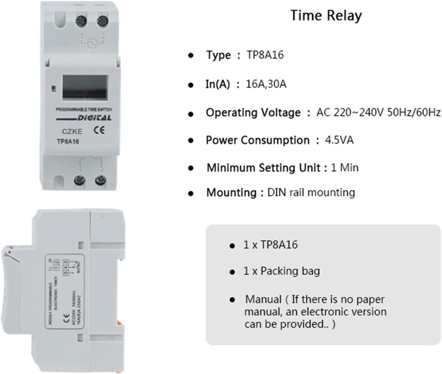 KDEGK TP8A16 AC 220V 16A 30A Din Rail Weekly 7 Days Programmable Digital TIME SWITCH Relay Timer Control