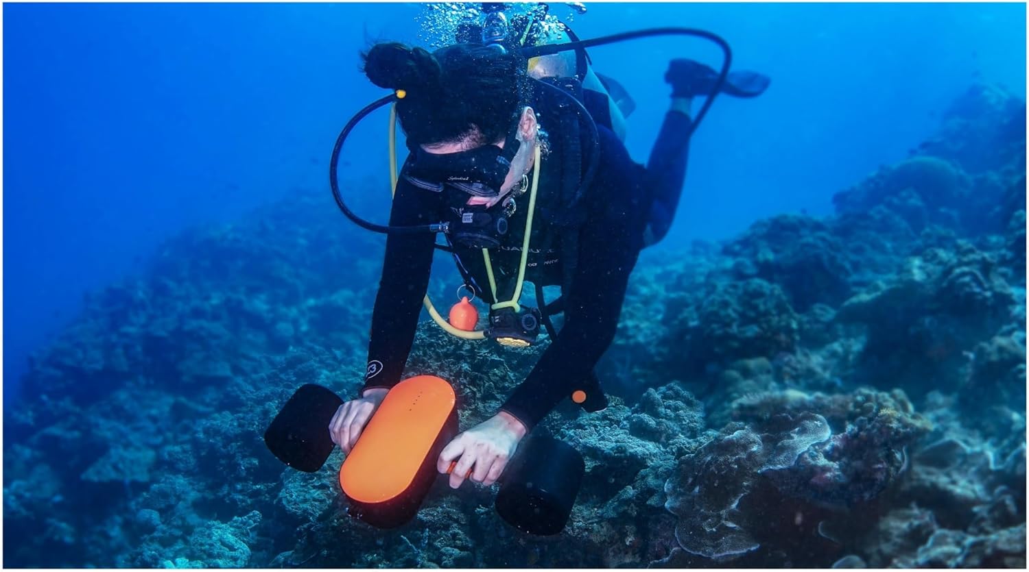 Hign-concerned Chemical : NoneType : Hand Tool Partsweight : 2.7KGPower (W) : 350Wcharging time : 2HProduct name : underwater scooterpower supply : 360Wcolor : YellowBattery : 4400mAh/ 97.68whspeed : 1.2m/S 4.3km/Happlication : Swimming beach equipmentusa : underwater sportsrunning time : 40-60 minutesmaterial : ABS Plastic,ABS plastickeyword : diving scooter