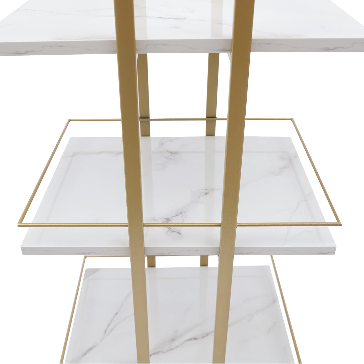 Description Are you still bothered by a cluttered desktop? You need to take a good storage assistant! This bar cart has a total of three levels of storage space for you to use, so you can partition and store a large number of items to make your desktop room tidier. It comes with universal wheels at the bottom, so you can move it easily. It can be used to store cosmetics, snacks, toys, books, toilet paper, and so on. It will be your ideal choice.SpecificationMaterial: Iron+WoodColor: White+GoldSurface Treatment: Baking PaintPacking Size: 44*34*75cm/17.32*13.38*29.52inProduct Size: 42*32*72 cm/16.54*12.6*28.35inPipe Wall Thickness: 0.8mm/0.031inGross Weight: 7kg/15.43lbsNet Weight: 6kg/13.22lbsLoad-bearing Capacity: 25 kg/55lbsPackage Included1* Bar CartNotesPlease allow the slight color difference caused by the shooting light and 1-3cm error due to manual measurement, and make sure you do not mind before ordering.