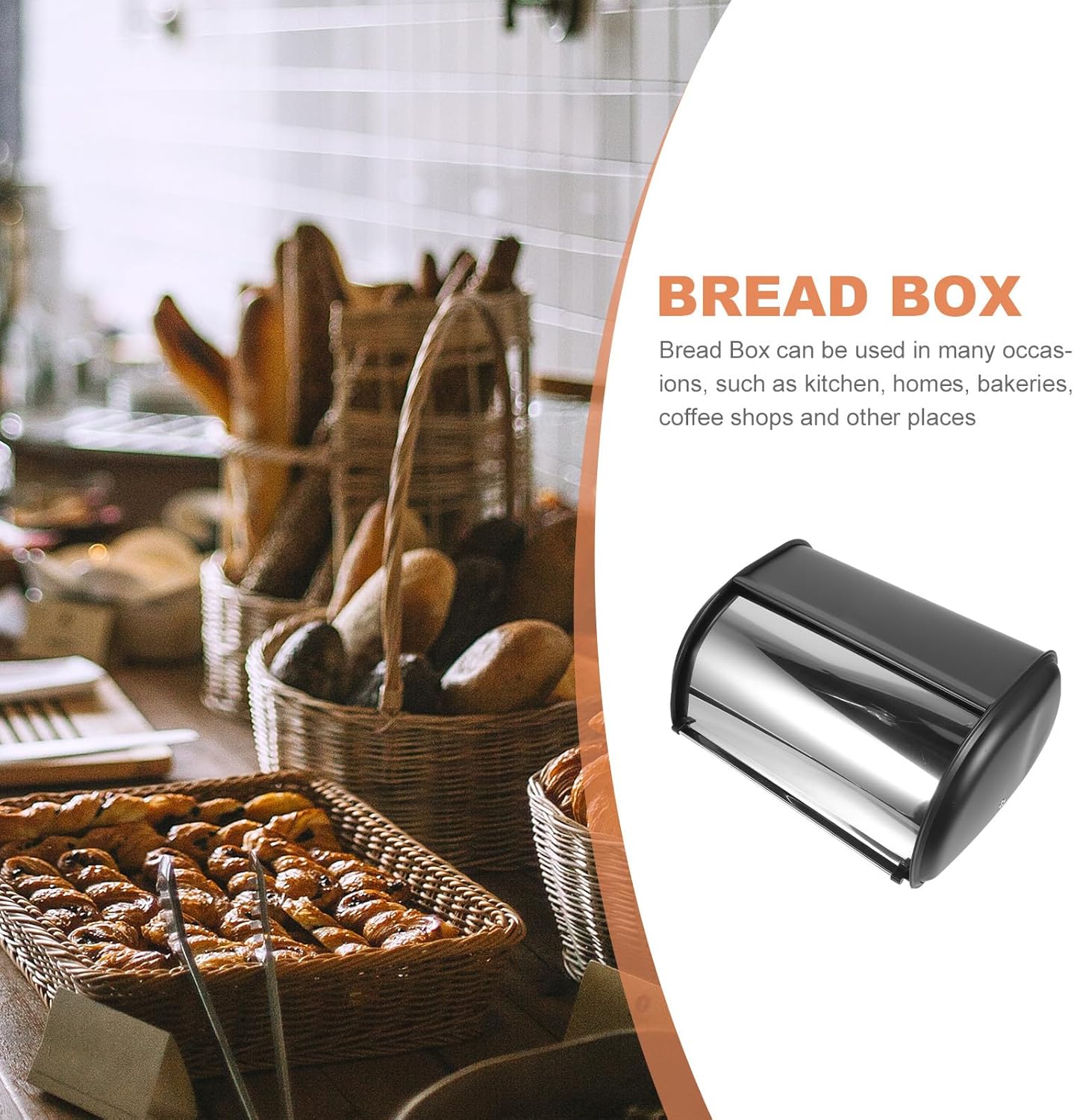 Package Include 1 x Bread Box Characteristics -Material:Stainless Steel -Color:Assorted Color -Size:34.50X23.00X14.50cm/13.56X9.04X5.70in -Product Info:Stainless steel bread storage box -This practical Bread Container is a practical storage tool for your kitchen, and can make your kitchen always in order bread keeper for countertop. -Manufactured with stainless steel materials, practical and for a long term use. -The bread box can prevent excessive water in the air from entering the box to maintain the taste of the bread metal bread bin. -The Bread Box can not your baked goods, also can beautify your kitchen countertop bread holder for kitchen. -The edges of the bread box are rounded and smooth, which can prevent fingers from being scratched stainless steel bread boxes.Goods Informationbread boxes This bread storage box is made of stainless steel material, sturdy and practical to use, which .bread organizer And this multi-function Bread Box is suitable for bread storage in kitchen, home, bakery, coffee shop, and much more.bread keeper for countertop You can use this decorative Bread Box to store bread, food, etc