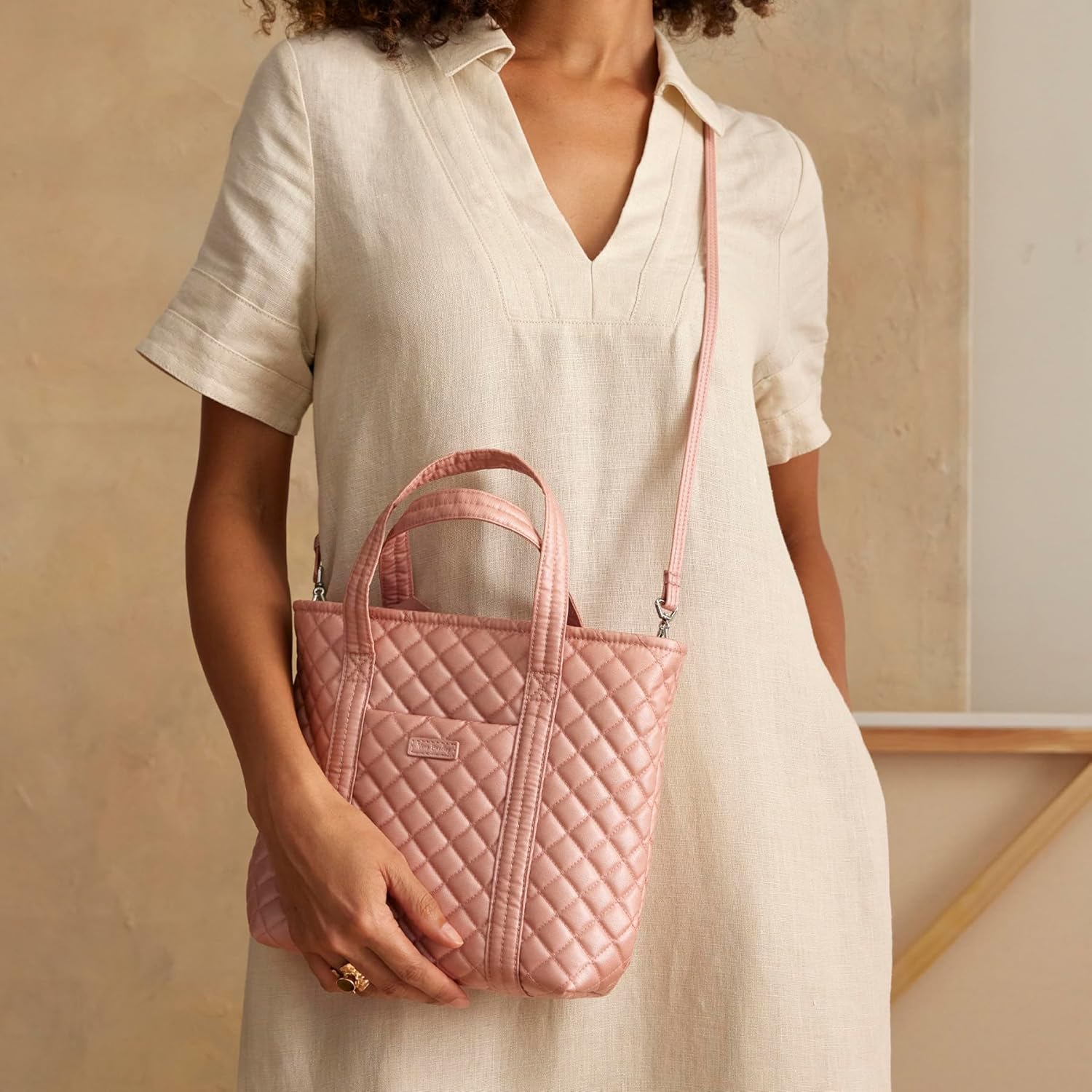 Vera Bradley totes work great as a purse or a handbag, but we also offer a beach tote, a market grocery tote, a lunch tote, and a plethora of tote bag for women - we are sure to have a tote bag that fits your needs Exterior features a slip pocket. Interior features a zip pocket. Zip closure. Remove strap before laundering; machine wash cold, gentle cycle, only non-chlorine bleach when needed; line dry.
