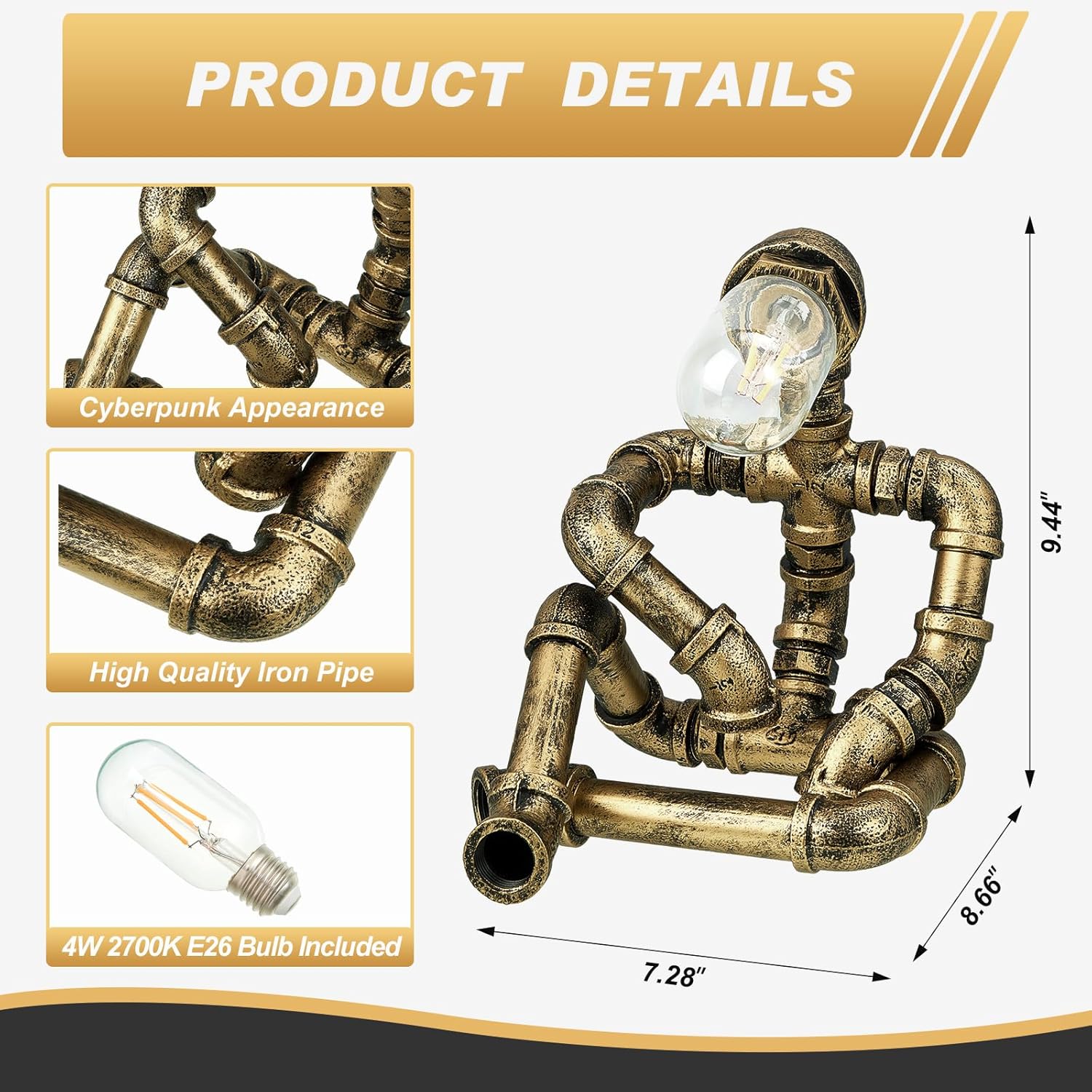 | Included Components | Steampunk robot lamp |