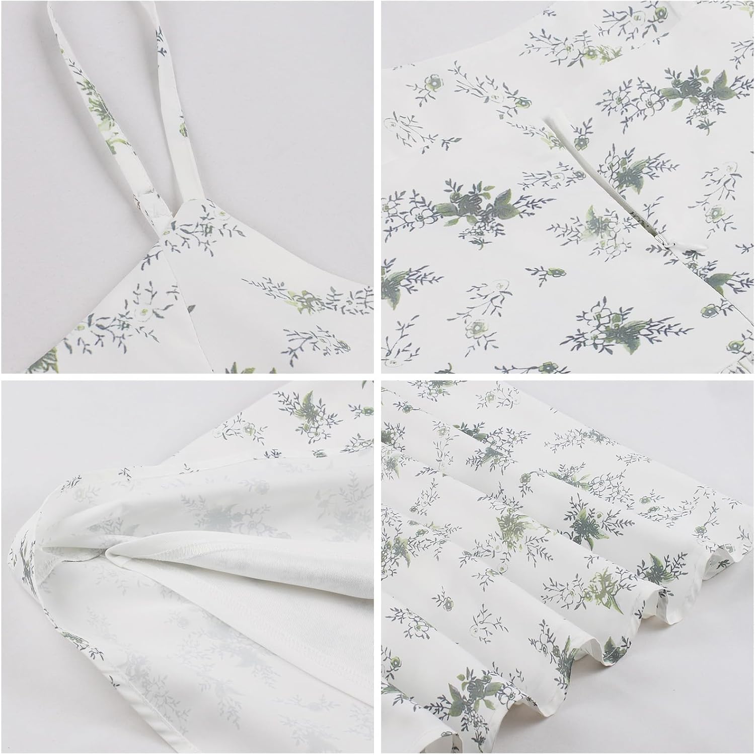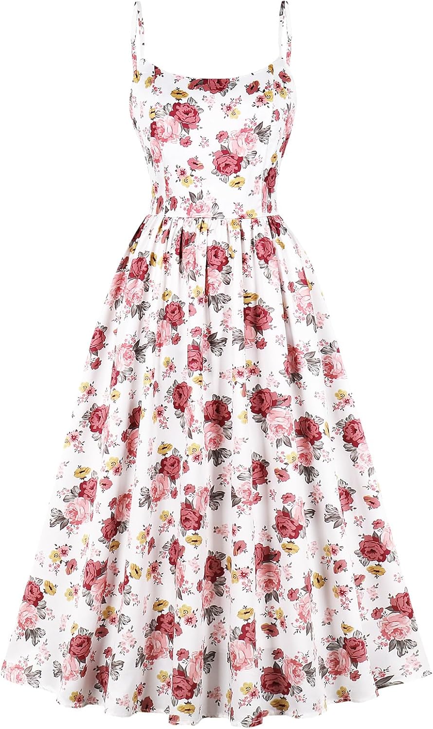 Women's Summer Sundress Boho Dress Sleeveless Spaghetti Straps Ruffle Midi DressFeature: Adjustable Spaghetti Straps, Scoop Neck, Backless, Solid Color/ Floral Print, Invisible Back Zipper, Ruffle, Above Ankle Length, Swing StyleDesign: The sundress sleeveless midi dress for women, gives you a flattering and elegant look in spring or summer. Adjustable spaghetti straps, hidden zipper at back, convenient to wear, can allow for a customized fit to different body shapes. Occasions: Fit for spring summer, beach, holiday, vacation, party, daily casual wear, dating, shopping, photo shoot or other occasions.Care Instructions: Hand wash with cold water, iron on low heat, no bleach, line dry.Size Chart:Please allow slight 1-3cm difference due to manual measurement and refer to the details to choose the suitable size.Tag No.S: Bust: 35.0" / 88cm; Waist: 28.0" / 72cm; Length: 44.0" / 113cm;Tag No.M: Bust: 36.0" / 92cm; Waist: 30.0" / 76cm; Length: 45.0" / 114cm;Tag No.L: Bust: 39.0" / 98cm; Waist: 32.0" / 82cm; Length: 46.0" / 116cm;Tag No.XL: Bust: 41.0" / 105cm; Waist: 35.0" / 89cm; Length: 46.0" / 117cm;Friendly Tips: Photo color might be a little different from the actual product due to color display of different monitors.