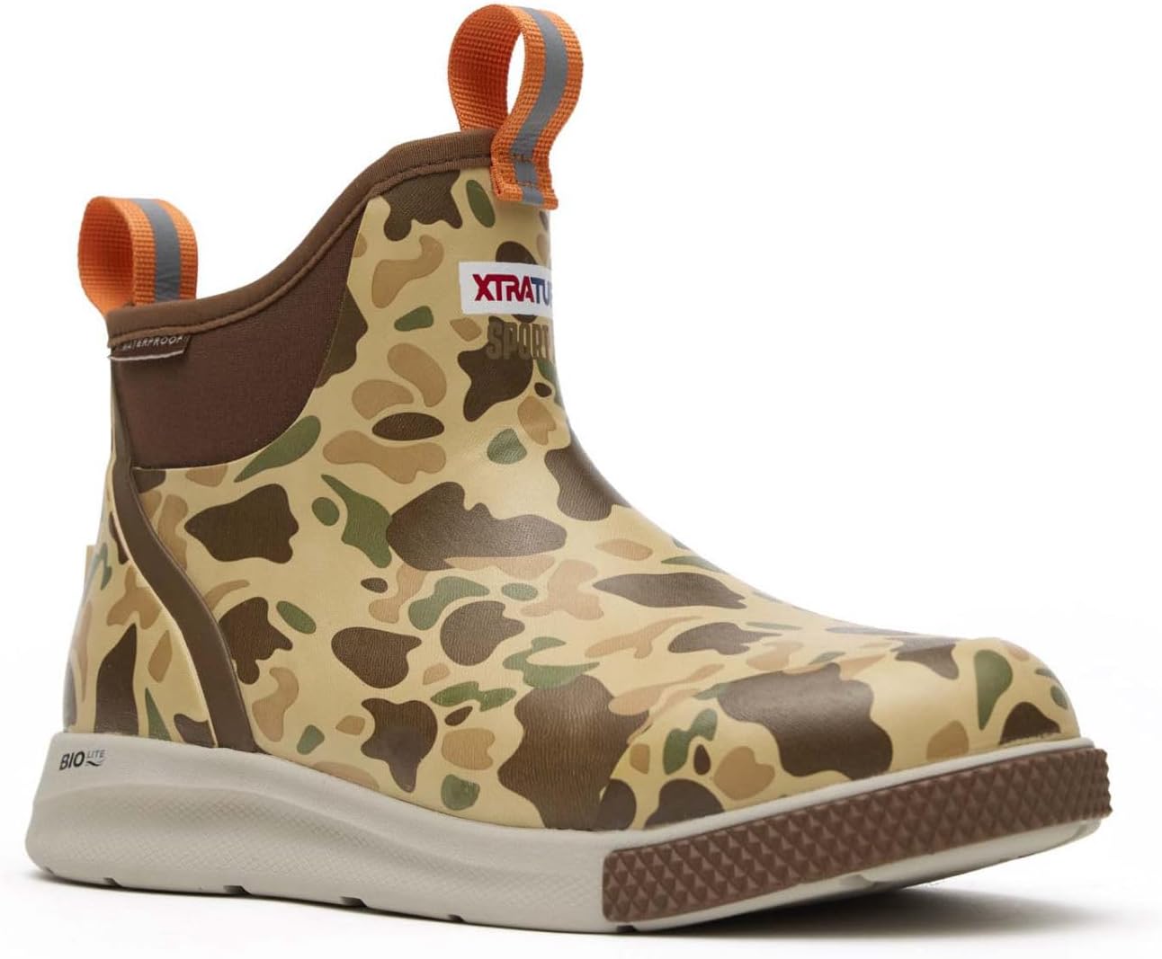 The Xtratuf Ankle Deck Boot Sport brings you everything you would expect from your XTRATUF boots but in a sportfishing specific silhouette that is up to 30% lighter than other 6 inch boots in this category. This Sport is built from a new high-performance foam which is ultra-durable and slip resisting, all while being a one-piece outsole. This boot delivers the comfort and agility of a sneaker with long cushion life and high energy return, all while offering the same traction benefits of a full rubber boot. This style features our XTRATUF Duck Camo pattern.