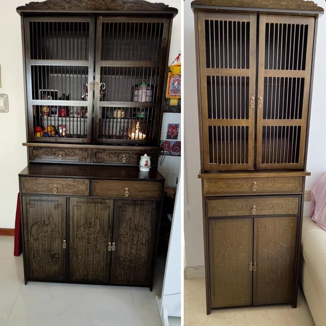 Welcome to YVYKFZD store:- Bamboo furniture can be used as spiritual altar tables, meditation tables, worship tables, etc. It is very suitable for statue altars, prayers, sacrifices, incense burning, divination, etc- The assembly is simple, only need to follow the drawings step by step operation can be, the holes are reserved in advance, just screw on the screw, quickly enjoy the fun time with your family. Note: This product is a Buddhist platform only, other accessories such as Buddha statues are not includedSpecification:● Name: Personal shrine altar table, meditation storage table, day of the dead altar stand, buddha statue offering table, pet ashes house pooja table, home incense table buddhist shrine prayer stand riser● Material: Bamboo● Color: Walnut● Size: 50x36x186cm/19.6"x14.1"x73.2", 60x36x186cm/23.6"x14.1"x73.2", 70x36x186cm/27.5"x14.1"x73.2", 80x36x186cm/31.4"x14.1"x73.2", 100x36x186cm/39.3"x14.1"x73.2"● Purpose: Can be used for prayer, incense burning, divination, offering, meditation, worship, ancestral hall, temple, worship, sacrificePackage Includes:1 * Personal Shrine Altar RackNote:1. Please check the size before buying. Due to manual measurement, an error of 0-3cm will occur. Hope for understanding2. The product photos do not contain items other than the product3. Please note that due to different monitors, there may be slight color difference, please understand