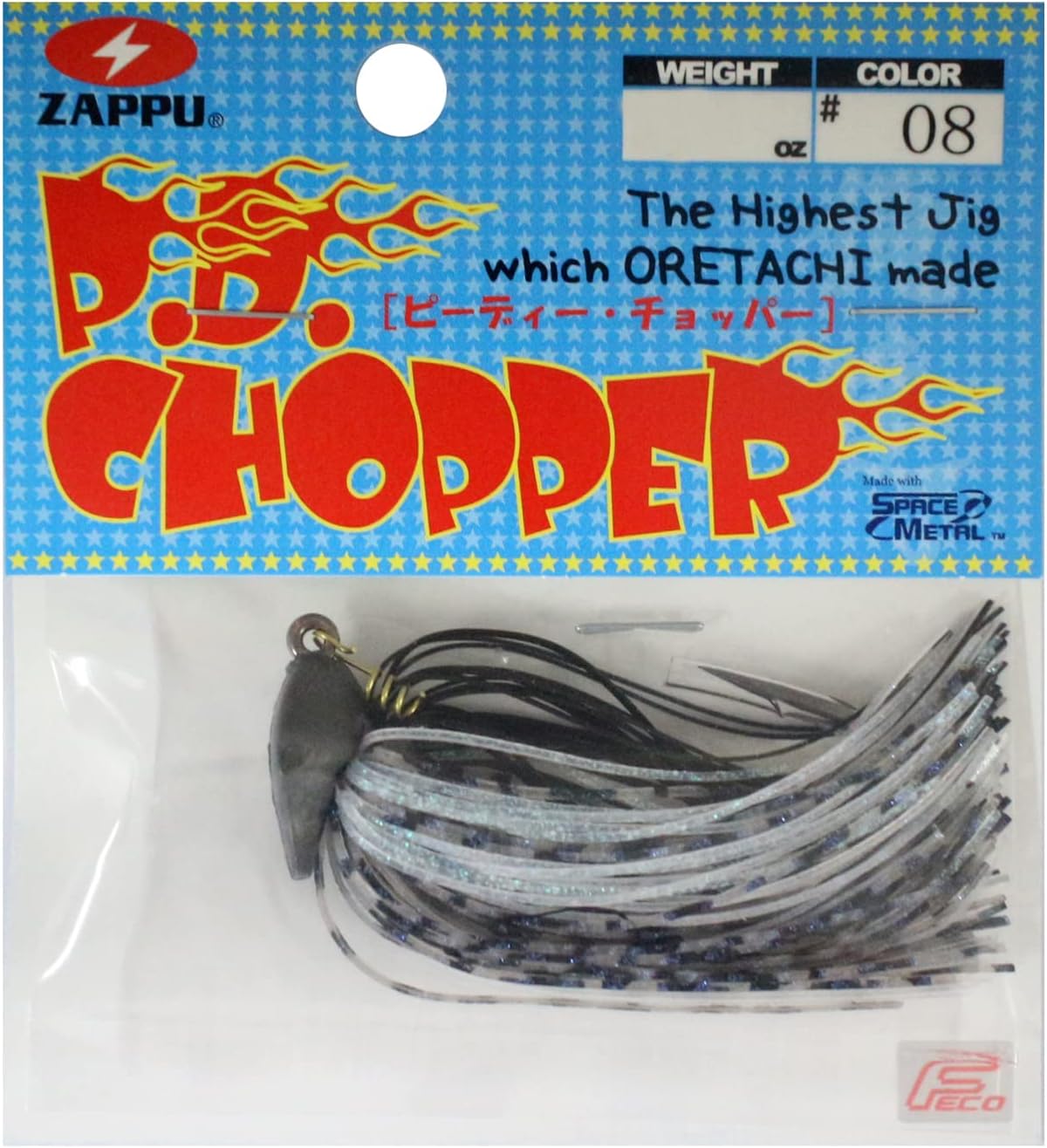 ZAPPU/Zap P.D. CHOPPER/PD Chopper, 1/2 oz; Weight: 1/2 oz; Uses a silicone skirt with a good flare feeling. Includes corkscrew worm keeper. Hook Size: #4/0 "Flat head not only stands flat at the bottom but also helps improve the ability to wear out." " " Wacky Series, Dowzer continues to Saztec and Pail Driver. Rugged rubber jig The perfect shape for studying the head balance and hook position to ensure that the bottom stands securely, and to get the weed out well.