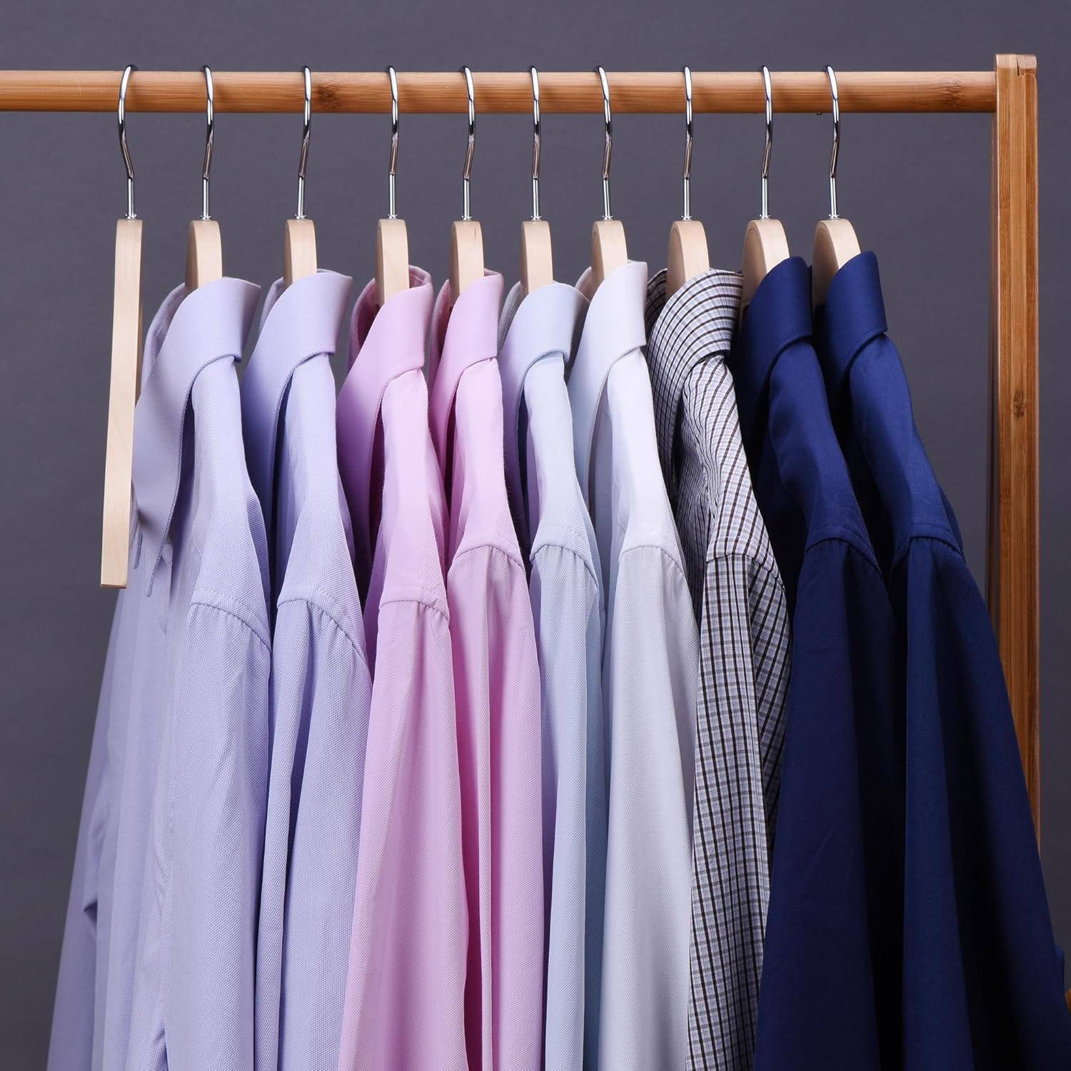 Sukkiri Homu 30 Pack Wooden Coat Hangers, Light Weight Natural Clothers Hangers with Non Slip Pant Bar for Suits, Shirts, Jackets, Dress, Pant