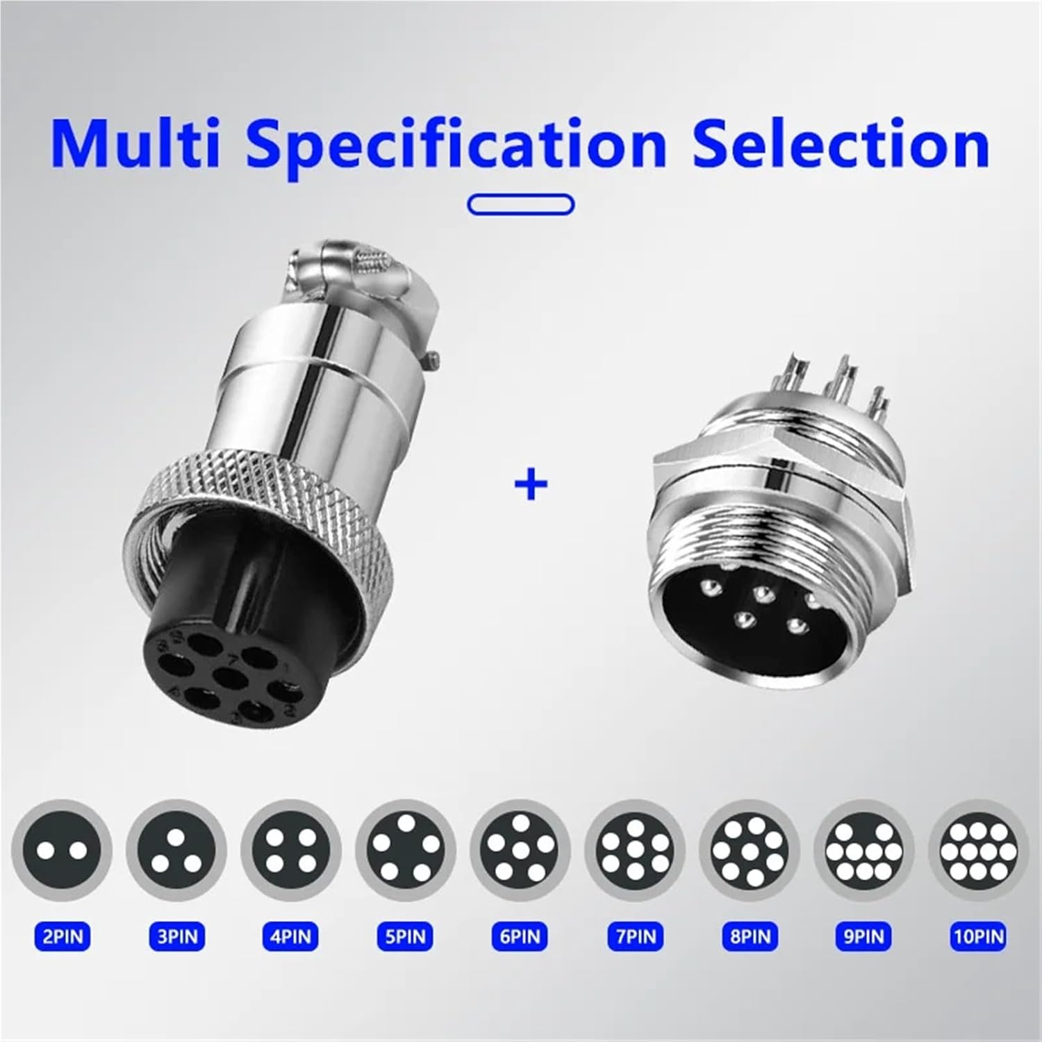 Rectangular Connectors5Pcs GX16 Plugs Socket Butt 2/3/4/5/6/7/8/9/10 Pin Male Female M16 Docking Connector