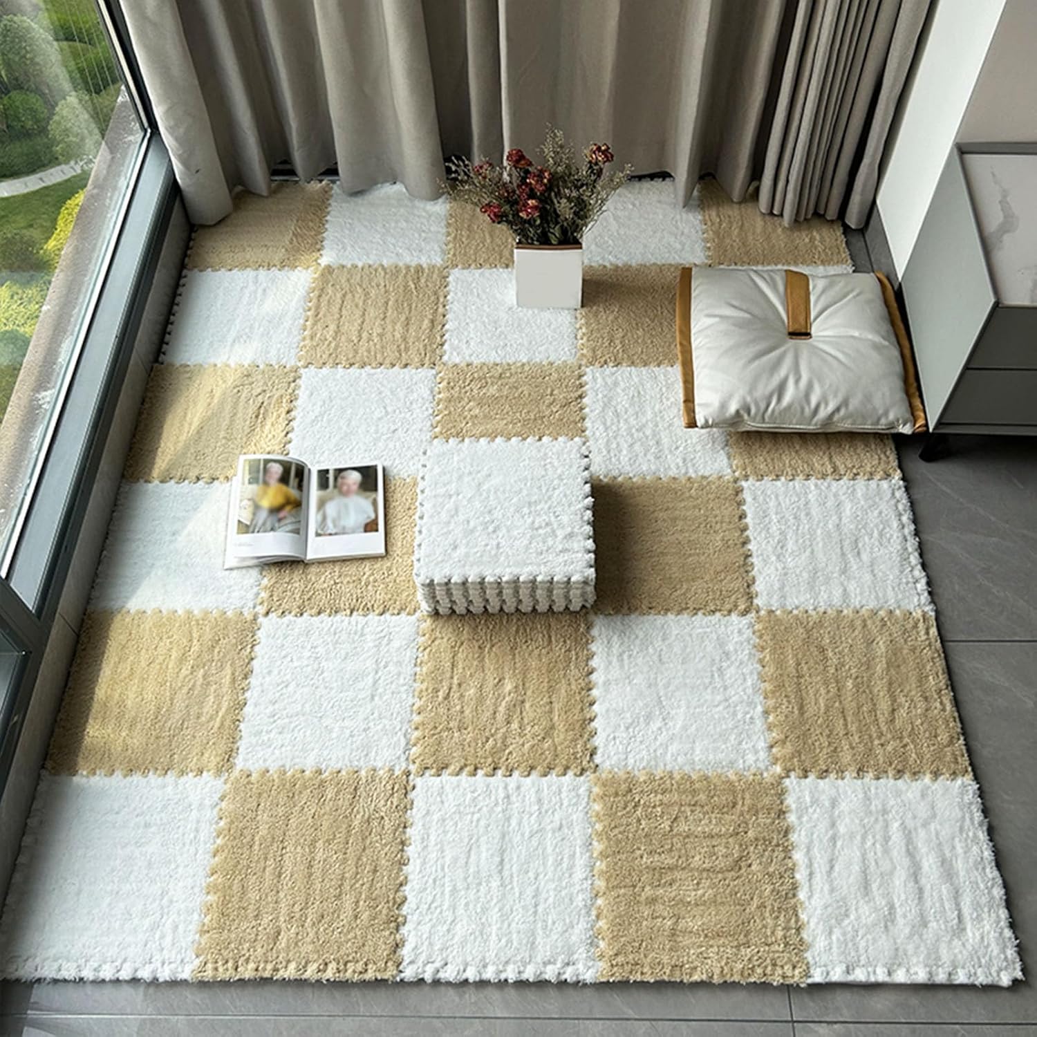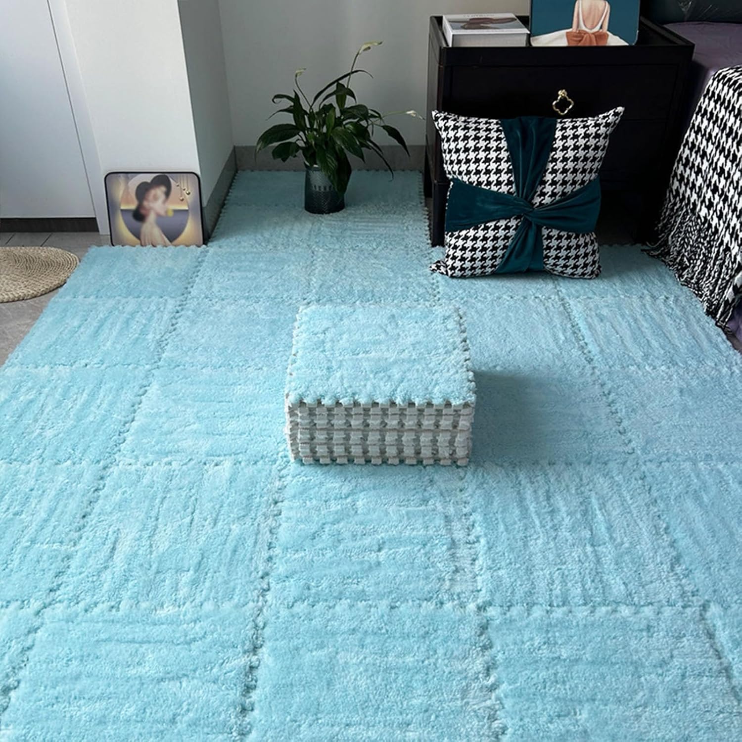 These plush puzzle foam floor mats are a great addition to a playroom or any space! The interlocking design of the carpet tiles allows you to easily assemble and disassemble in one minute. At the same time, these play mats feel as soft and silky as carpet, the different colors are inviting and vibrant,surprise and delight. Product Name: Plush Puzzle Foam Floor Mats/Interlocking Carpet Tiles Packing list: 60* plush puzzle foam mats Individual item dimensions: 11.8x11.8x0.23 inches (30x30x0.6 cm) or 11.8x11.8x0.39 inches (30x30x1 cm) Function: Home decoration/floor protection/leisure and relaxation Material: ethylene vinyl acetate (EVA) *Installation Instructions: The mat is machine cut, so there will be some lint and debris. Before installation, tap the two rugs against each other to remove surface lint and debris. *Care instructions: You can use a wet towel to wipe. For daily cleaning, it is recommended to use mild soap and scrub gently with a lint brush. Air dry immediately after cleaning to extend the life of your puzzle foam floor mat. Machine washing and vacuum cleaning are not recommended. ***For custom colors, textures and sizes, please feel free to contact us. Precautions: 1. Manual measurement, please allow slight size error. 2. Due to different shooting methods, slight color differences between the screen display and the actual color are normal. Please refer to the actual product.