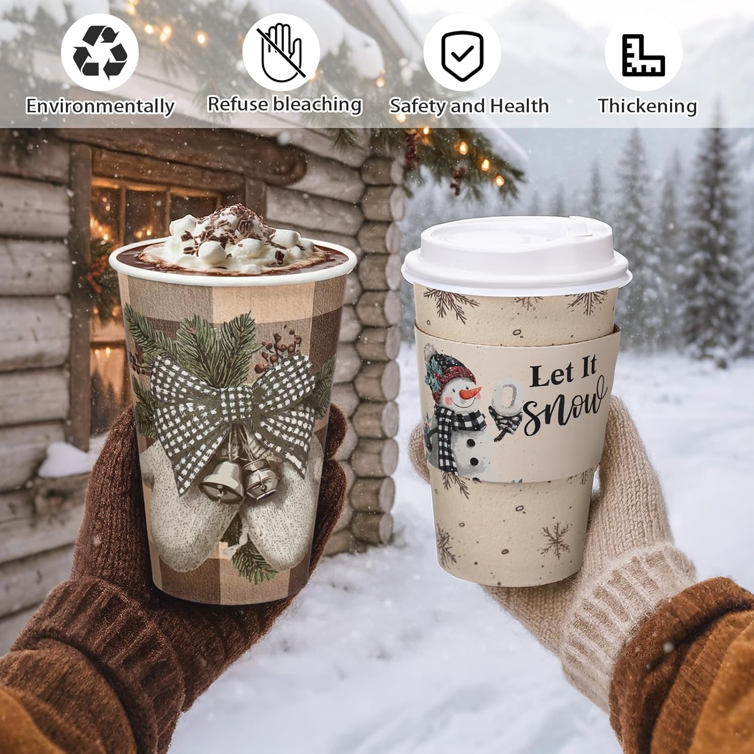 Features: Easy to use: Our Christmas hot cups are designed with lids that are tightly sealed to the mouth to help prevent leaks and spills, and the matching cup sleeve will effectively prevent heat release and won't burn your hands. Nice festival gift: You can send these festive disposable coffee cups to your friends, families, colleagues and more you care, and they will be delight to receive such practical gifts and feel your care. Specifications: Material: paper Size: approx. 16 ounces Color: multicolor Package includes: 72 x Christmas disposable coffee cups 72 x Cup lids 72 x Cup sleeves Notes: Manual measurement, please allow slight errors on size. The color may exist a slight difference due to different screen displays