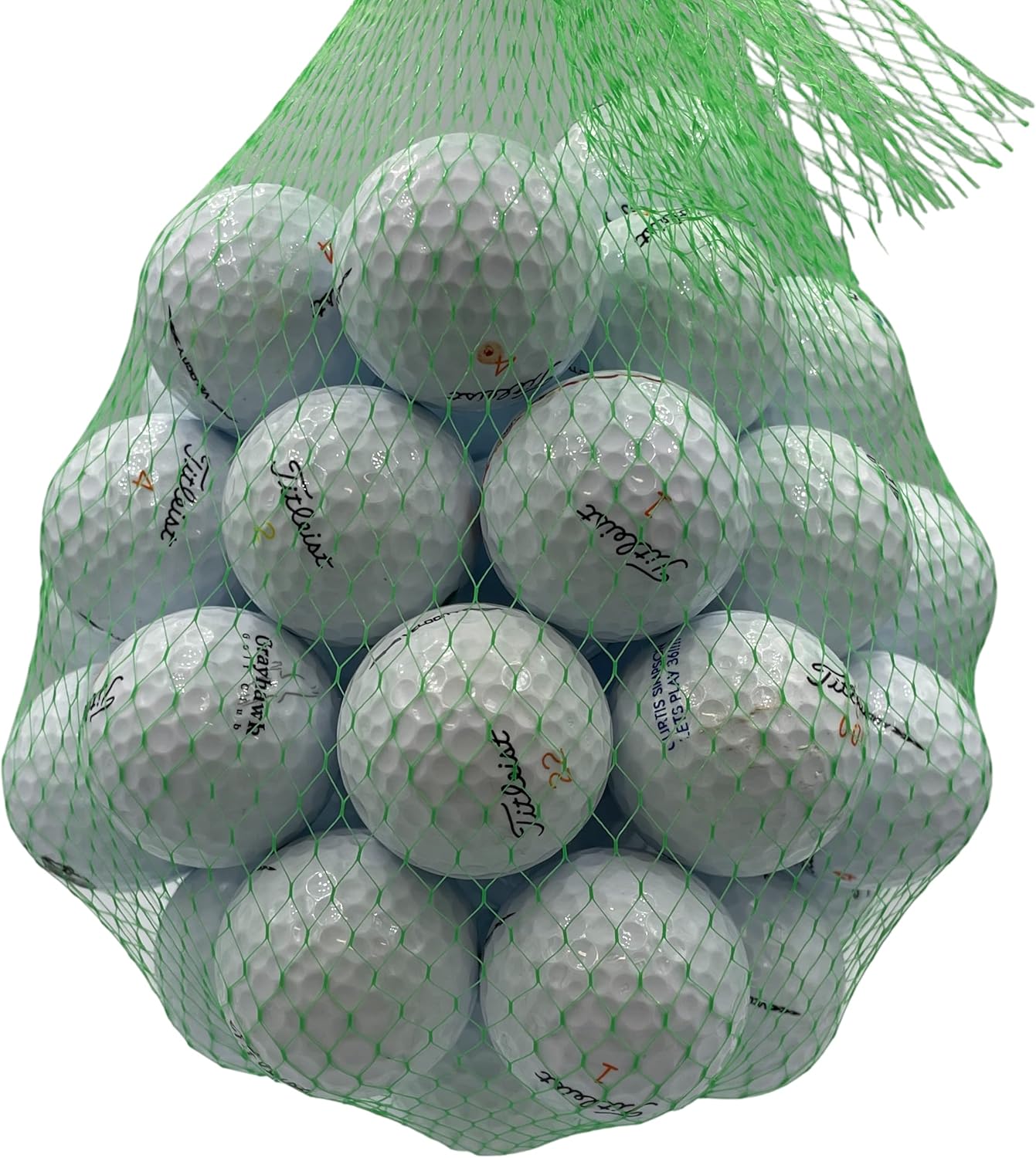 Grading Descriptions:5A / Mint 5A or Mint quality is the best available grade of recycled golf balls. These balls are like new; they will show no or very little wear and will maintain the original color and sheen. These will include player pen markings, as well as team and corporate logos. It is hard to believe they are used! 4A / Near Mint 4A or Near Mint quality recycled golf balls will have slightly noticeable imperfections, generally how a new ball would look after 1-3 holes of golf. These balls will include scuff marks. They may also be slightly discolored and have minor cosmetic blemishes, which do not compromise the flight characteristics of the golf ball. These balls will include player pen markings, as well as team and corporate logos. 3A / Good 3A or Good quality recycled golf balls are very playable and in good condition, generally how a new ball would look after 9 holes of golf. They may include moderate surface blemishes, scuffs, and discoloration which will not affect the trajectory, distance or flight path of the ball. These balls may have minor scratches, but will not have cuts or gouges. Higher grade Practice and X-OUT models may be included. These golf balls will include player pen markings, as well as team and corporate logos. 2A / Hit Away 2A or Hit Away quality recycled golf balls are very cosmetically challenged. They will have major surface blemishes, major discoloration, and may even be cut or out-of-round. We do not recommend playing a round of golf with these but they are perfect for practice or hitting where you do not need to get them back!
